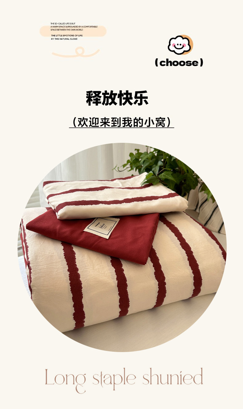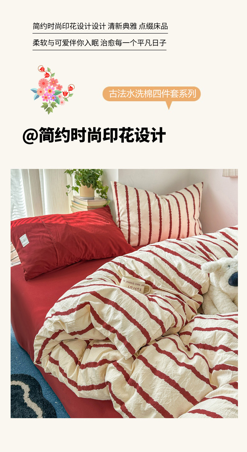 (总)上尚居 2025新款简约时尚木棉云感皱皱纱四件套,邦尼,朝花夕拾,点点莓果,浮生如梦,花季如梦,浅若花落,倾心,森田园野,小确幸,紫萱