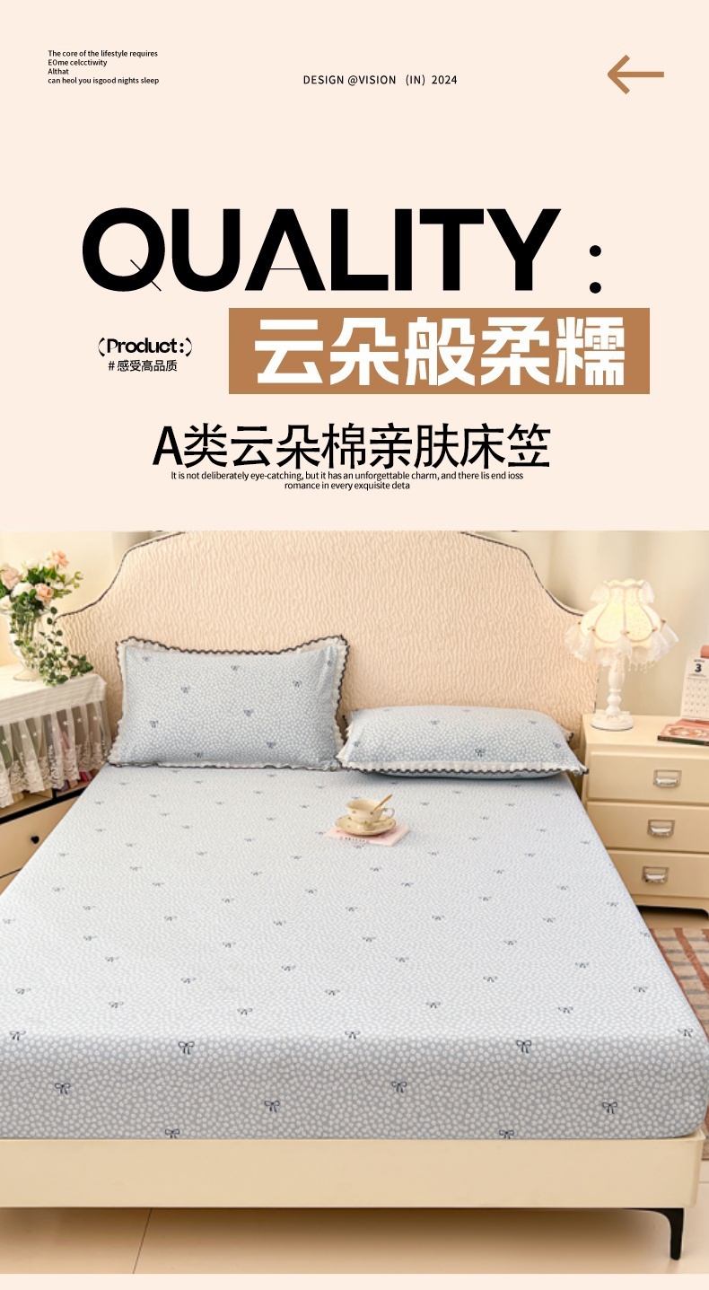 当前位置: 91家纺网 > 商品网购 > 床上用品 > 床笠 > 圣比熊 2026新款A类云朵棉亲肤四季款床笠席梦思床罩全包床单三件套 花屿轻梦