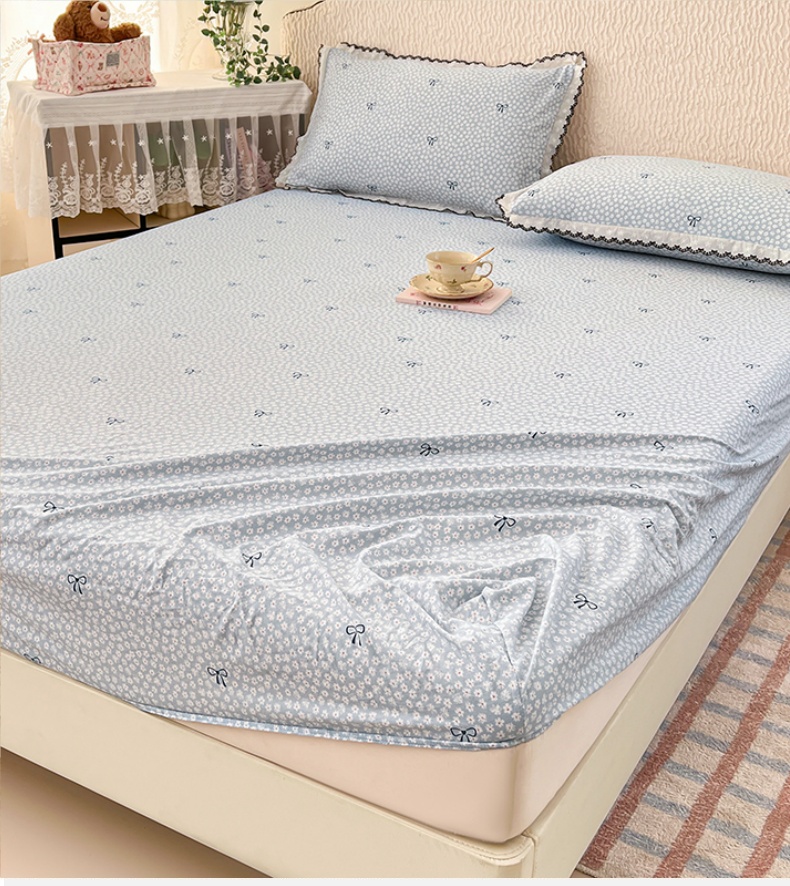圣比熊 2026新款A类云朵棉亲肤四季款床笠席梦思床罩全包床单三件套 花屿轻梦