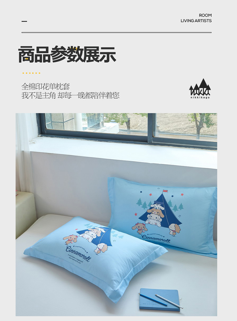商品名称:蘭菲家纺 2026新款全棉三丽欧印花卡通单品枕套 露营快乐