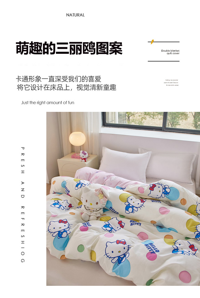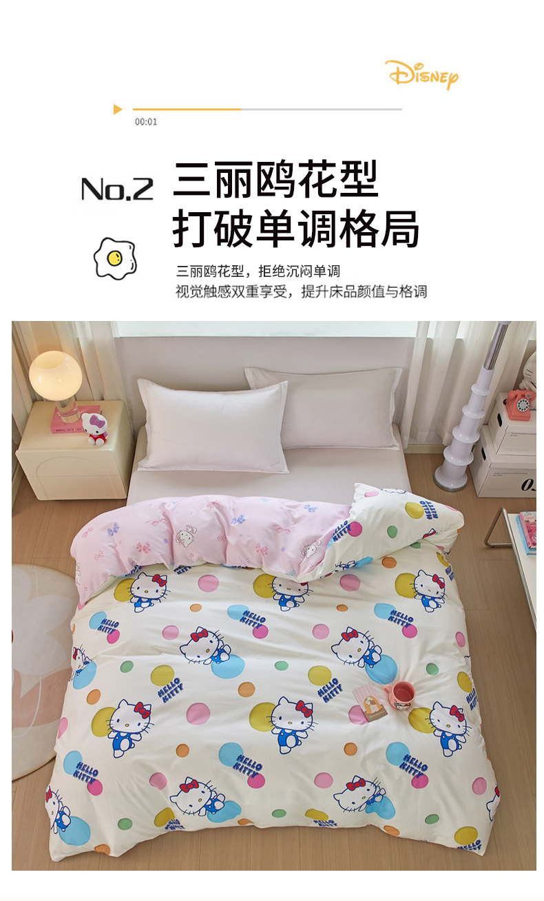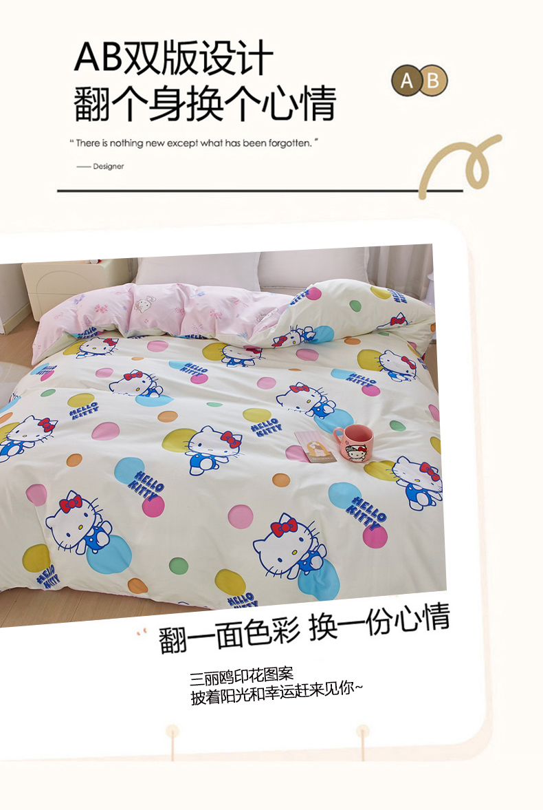 商品名称:蘭菲家纺 2026新款全棉三丽欧印花卡通单品被套 波点KT