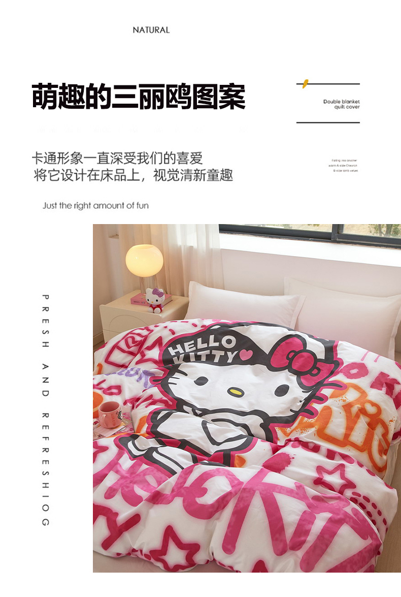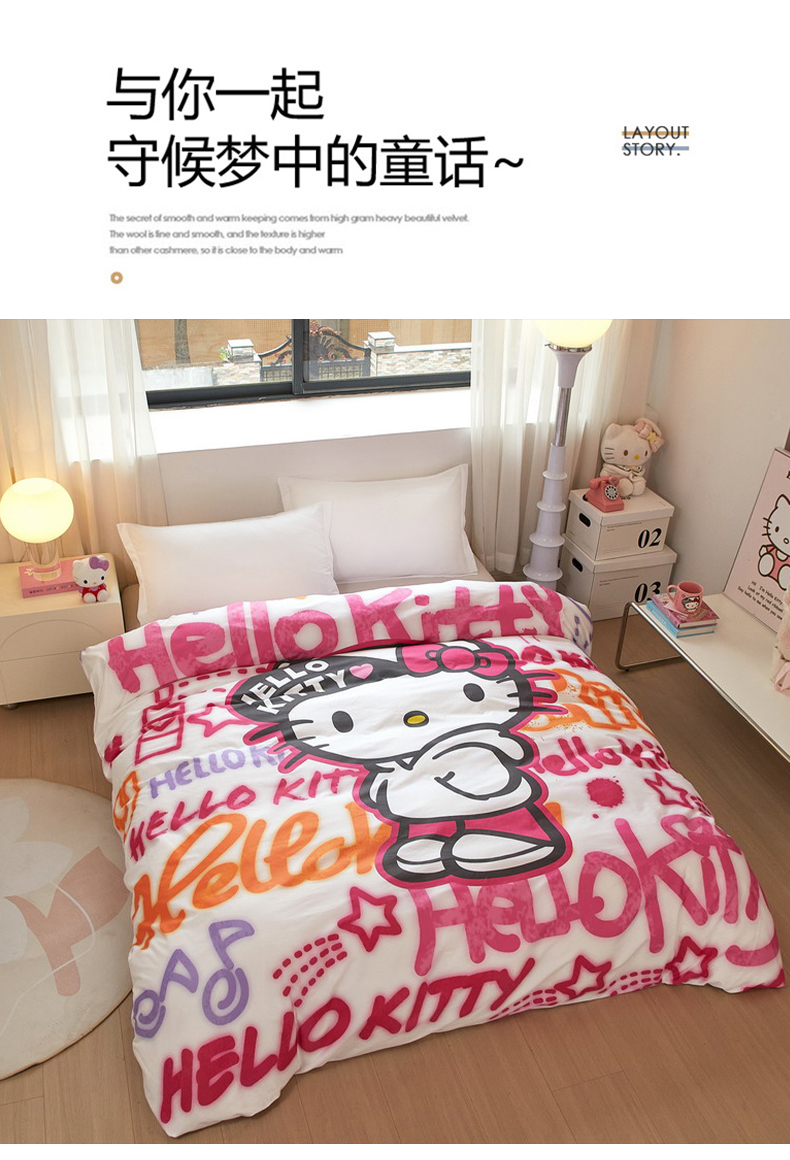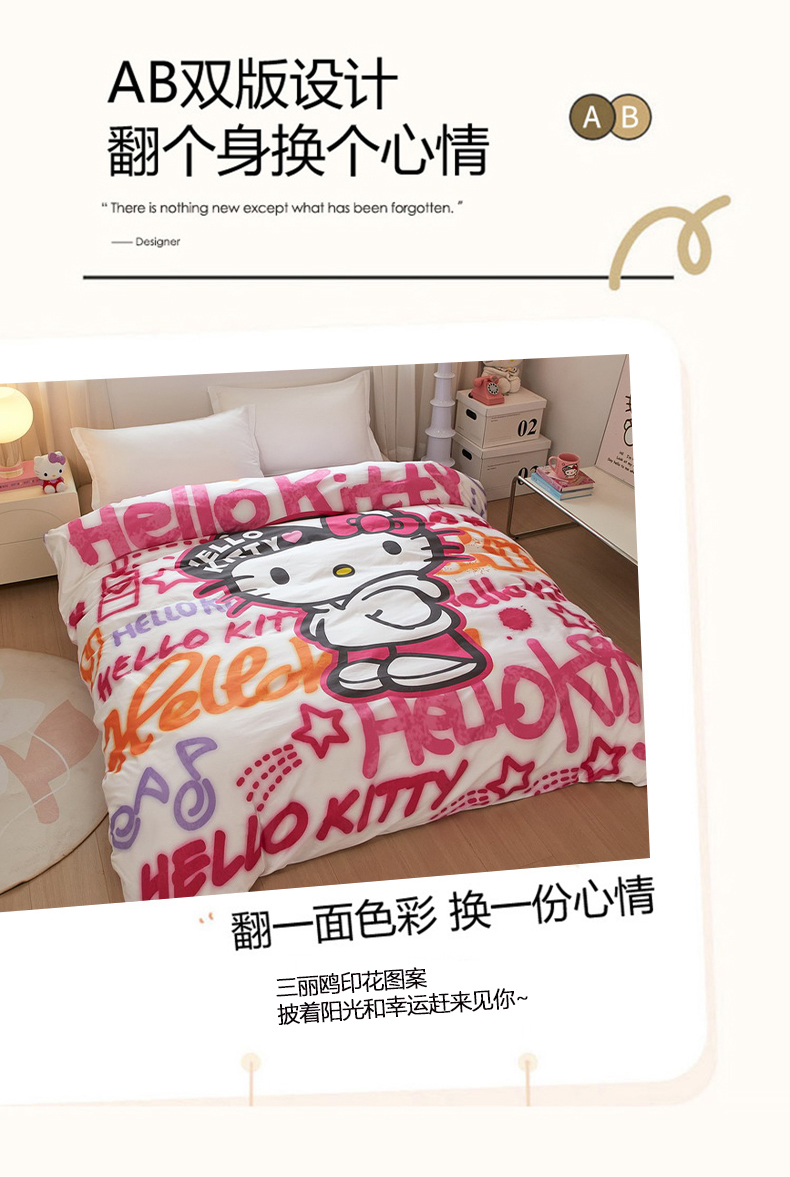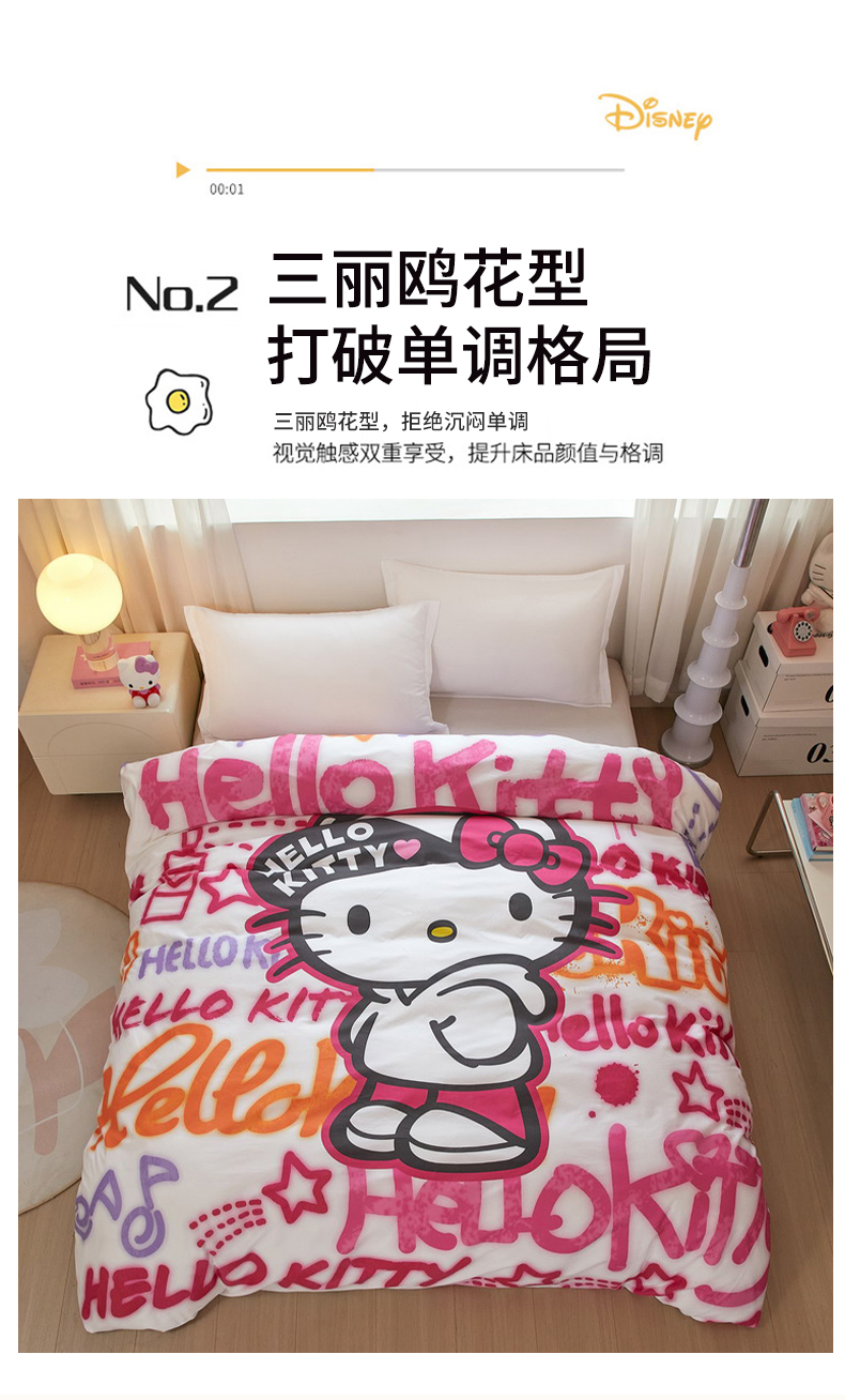 蘭菲家纺 2026新款全棉三丽欧印花卡通单品被套 涂鸦KT