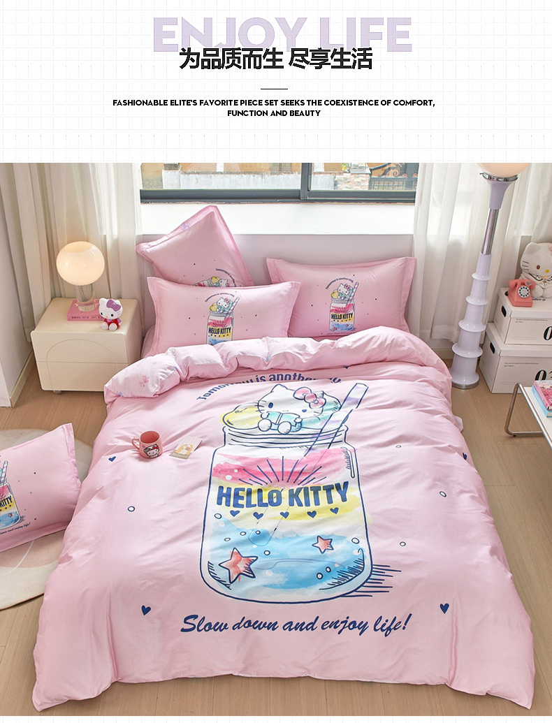 当前位置: 91家纺网 > 商品网购 > 床品套件 > 四件套 > 全棉普通四件套 > 蘭菲家纺 2026新款全棉三丽欧印花卡通四件套 大杯奶茶KT