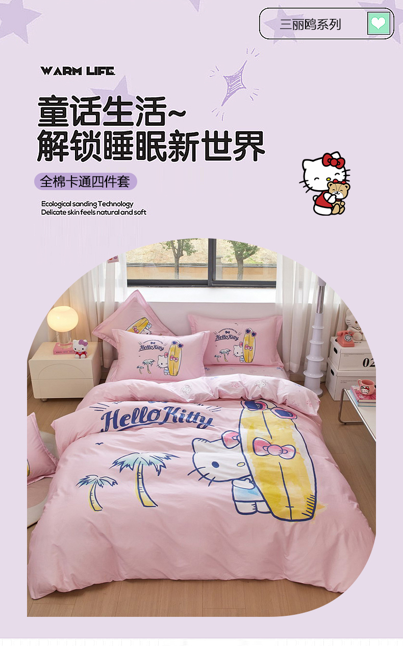 当前位置: 91家纺网 > 商品网购 > 床品套件 > 四件套 > 全棉普通四件套 > 蘭菲家纺 2026新款全棉三丽欧印花卡通四件套 夏日快乐