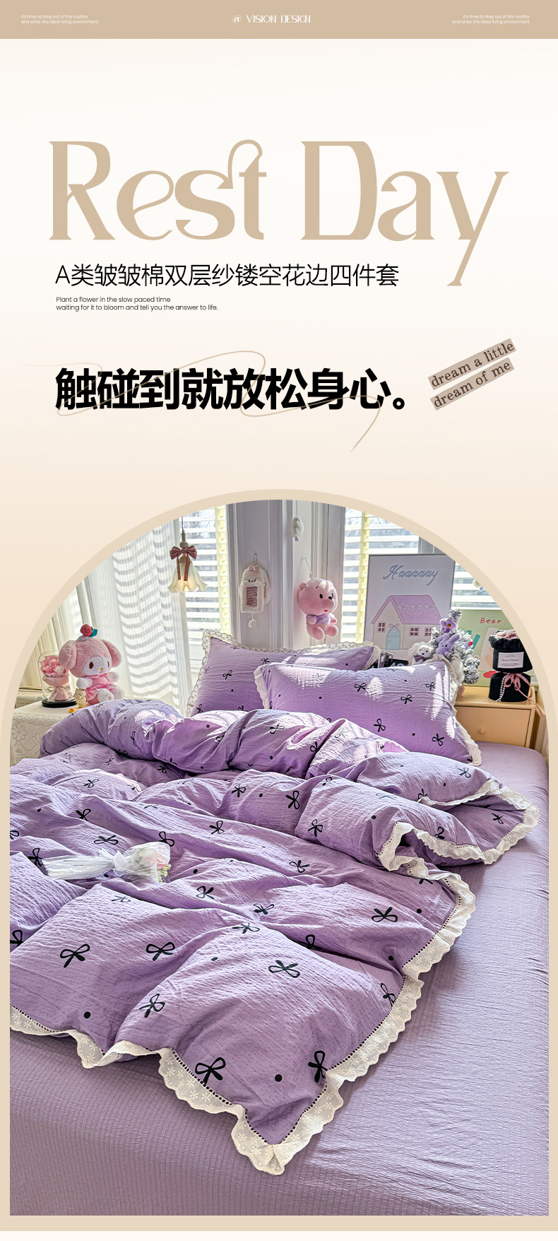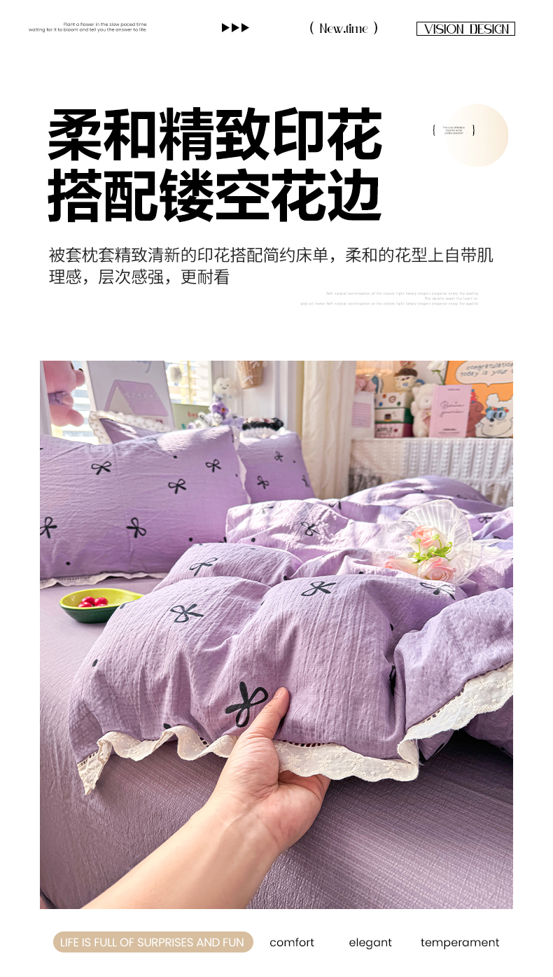 (总)优卡迪家纺馆 2026新款皱皱棉双层纱黑花边四件套下载文件包含买家秀,静谧时光,午后甜梦,波点生活-粉,波点生活-绿,波点生活-奶黄,波点生活-杏,波点生活-紫,草莓乐园,拂晓,花间喵语,花与蝶,花园日记,满庭芳,奶酪芝士,泡沫之夏,清晨,柔光邂逅,温柔蜜语,炫彩南瓜,阳光花园,雨蝶,元气小熊,紫苏,紫韵流光