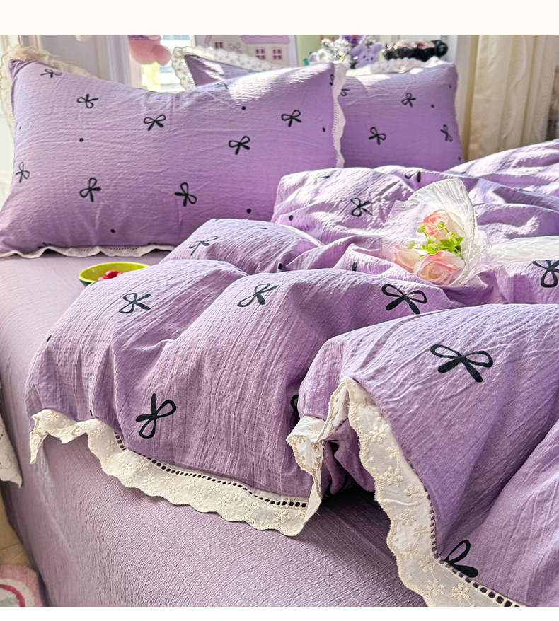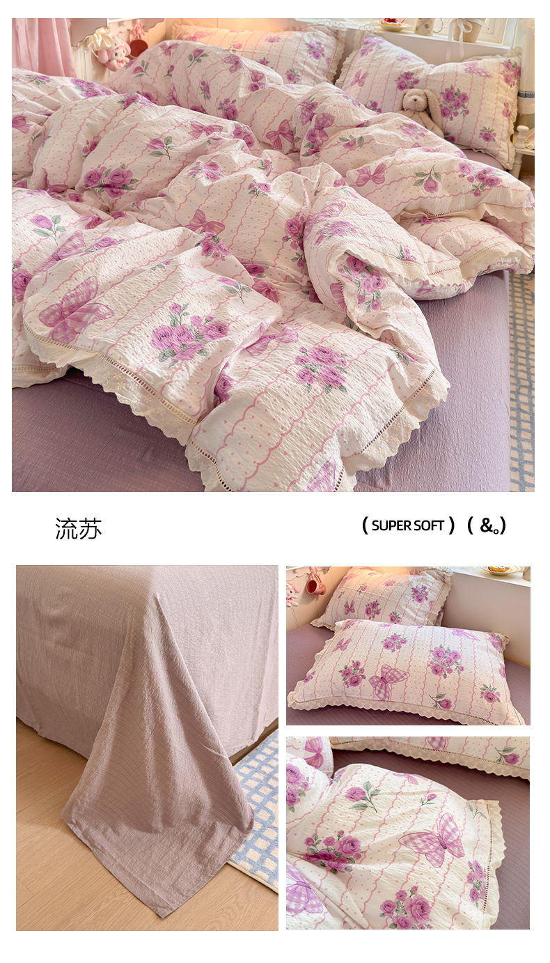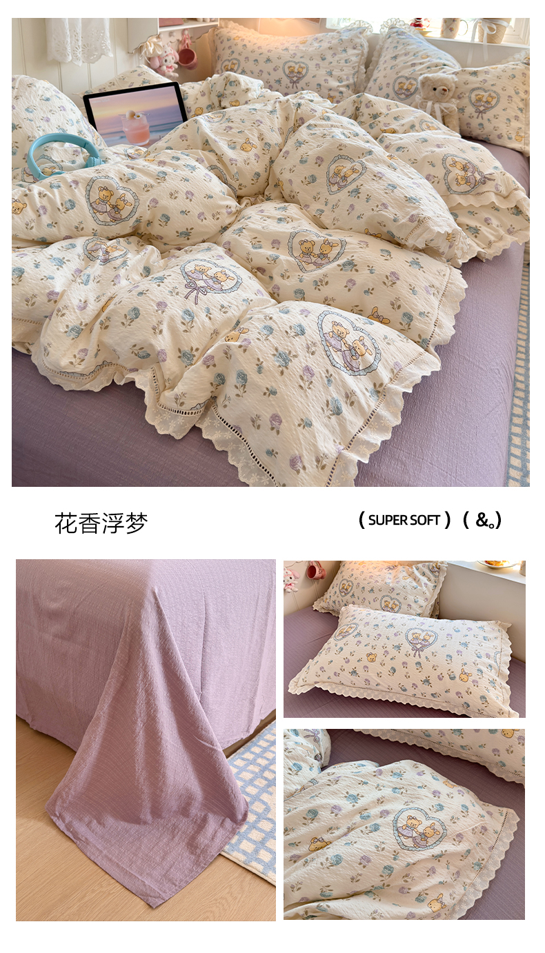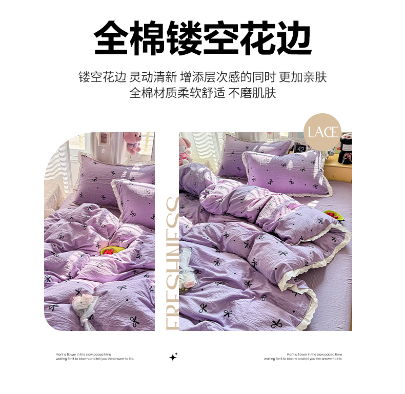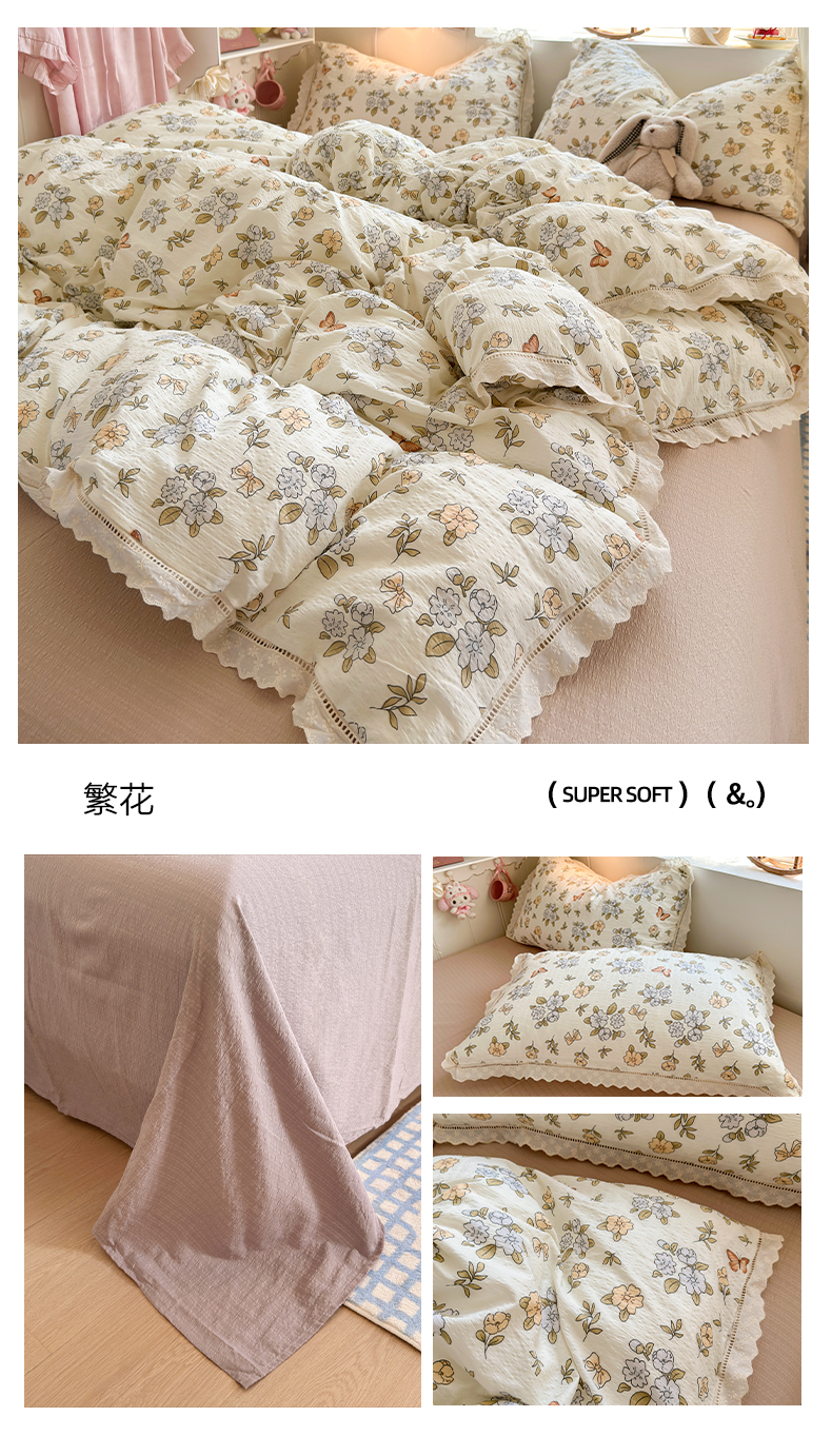 (总)优卡迪家纺馆 2026新款全棉花边皱皱棉双层纱四件套下载文件包含买家秀