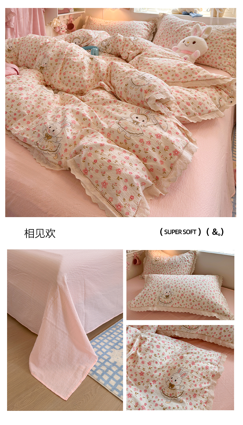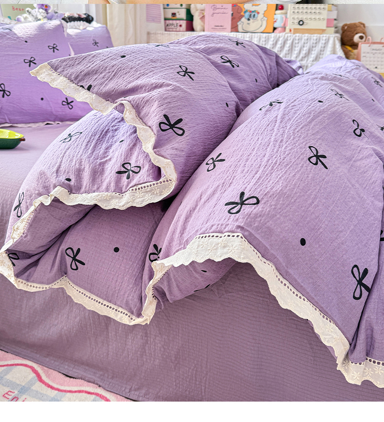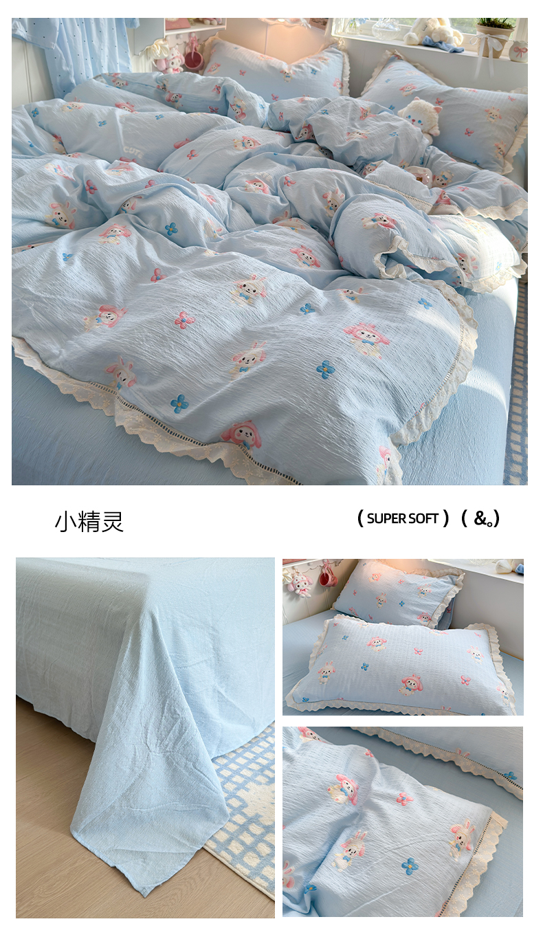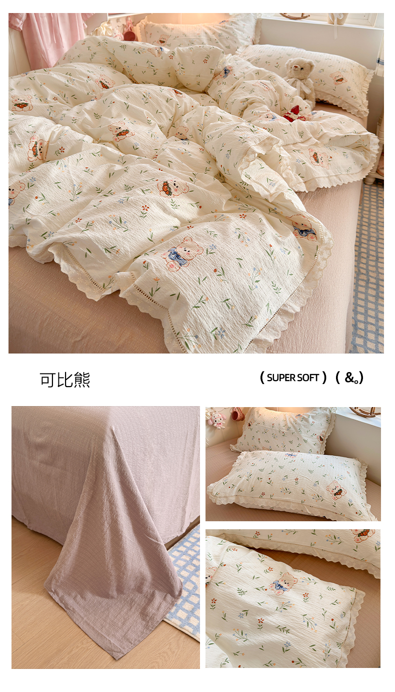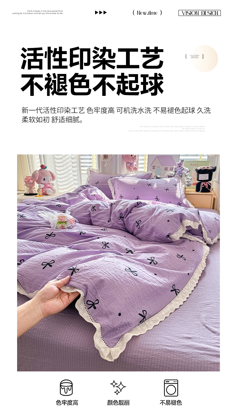 (总)优卡迪家纺馆 2026新款全棉花边皱皱棉双层纱四件套下载文件包含买家秀