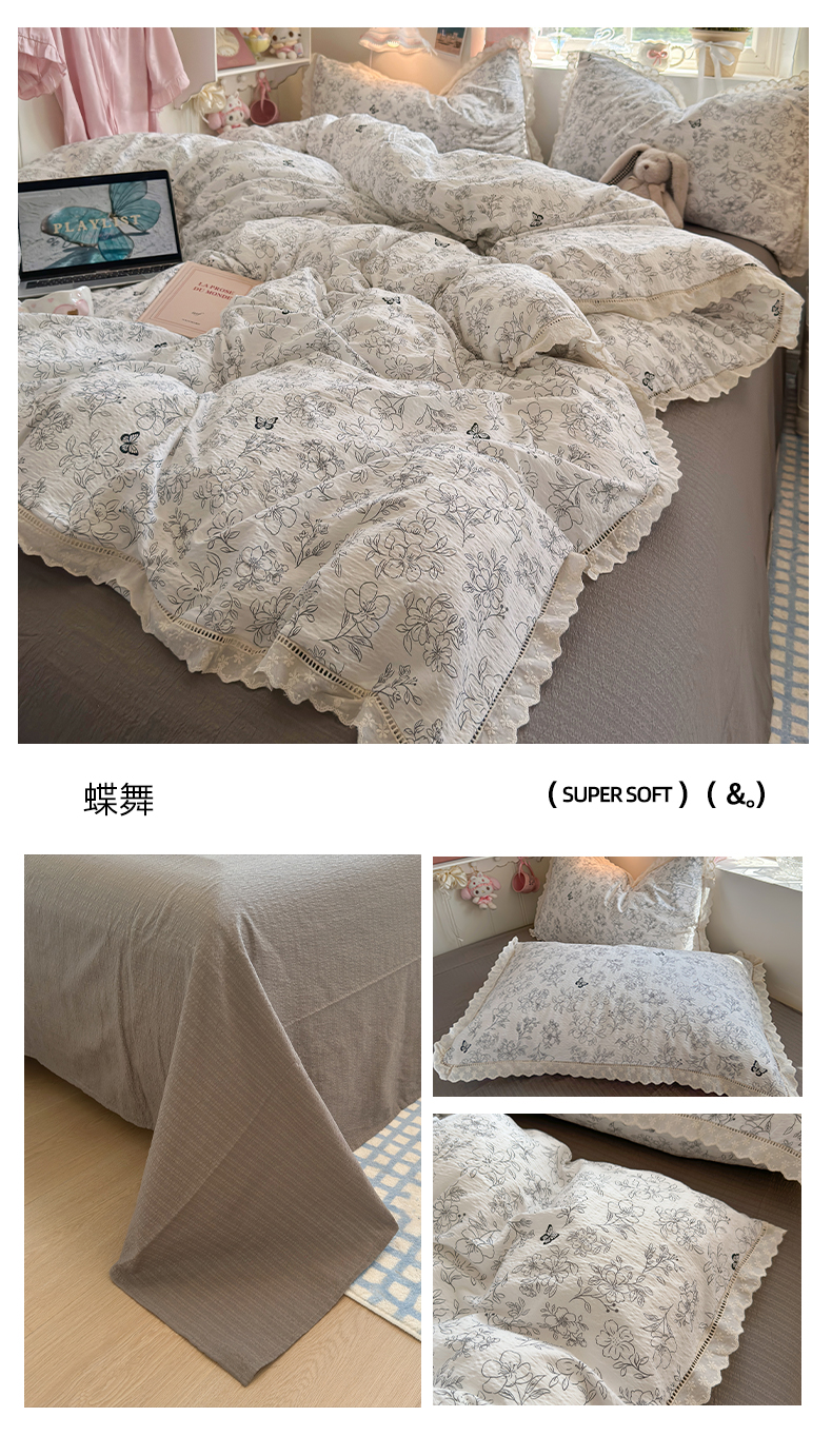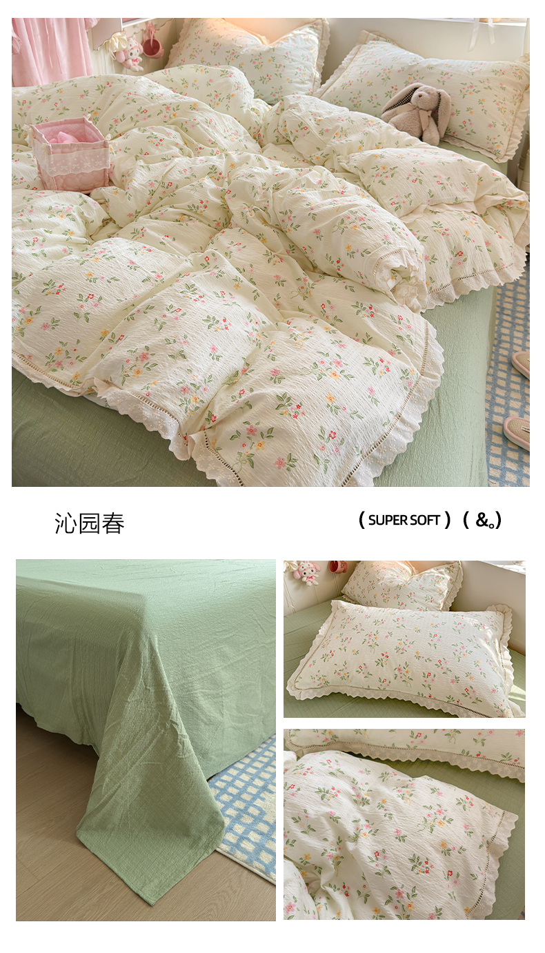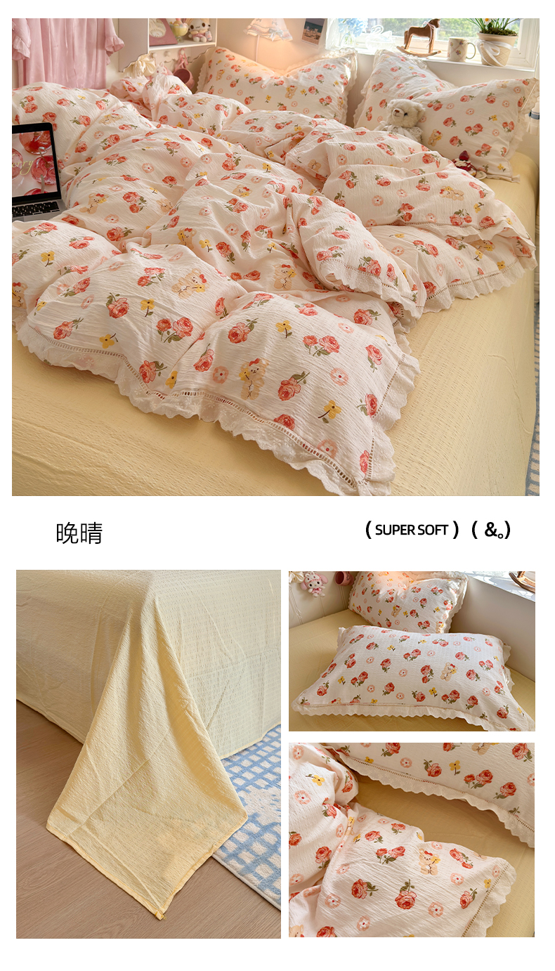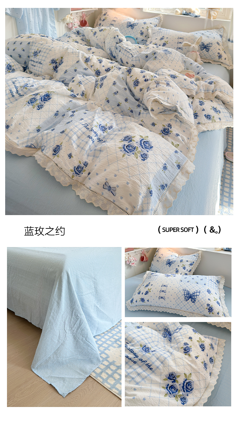商品名称:(总)优卡迪家纺馆 2026新款全棉花边皱皱棉双层纱四件套下载文件包含买家秀