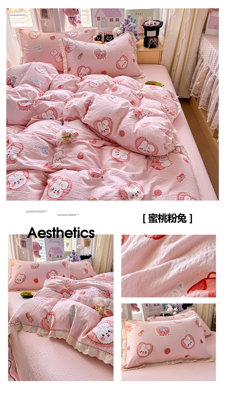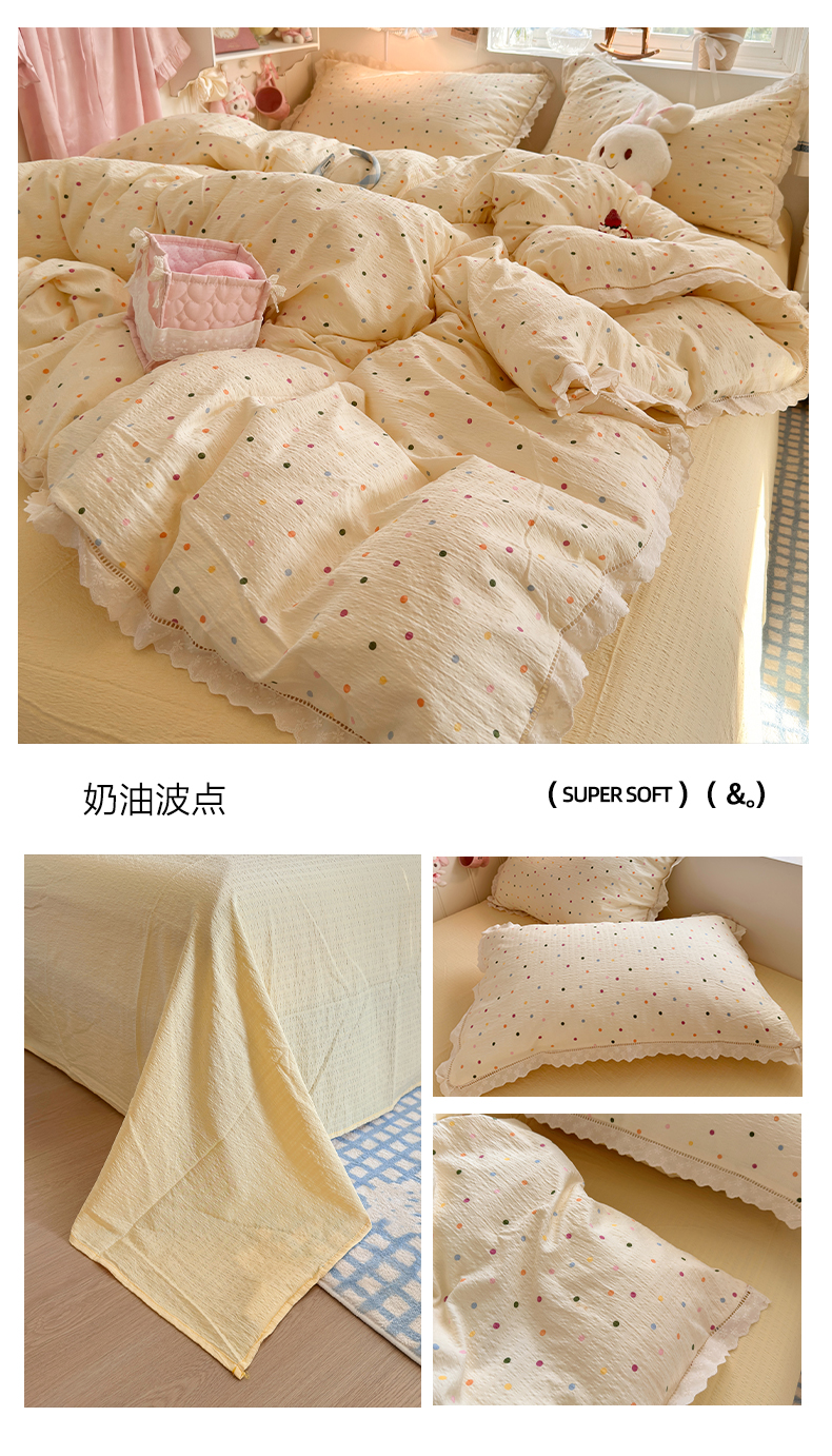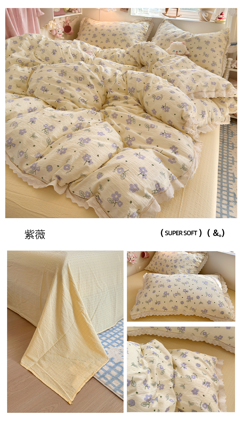 (总)优卡迪家纺馆 2024新款110克水洗棉甜心系列白花边四件套,甜心-奶油粉,甜心-奶油灰,甜心-奶油紫,甜心-奶油绿,甜心-奶油蓝,甜心-奶油黄