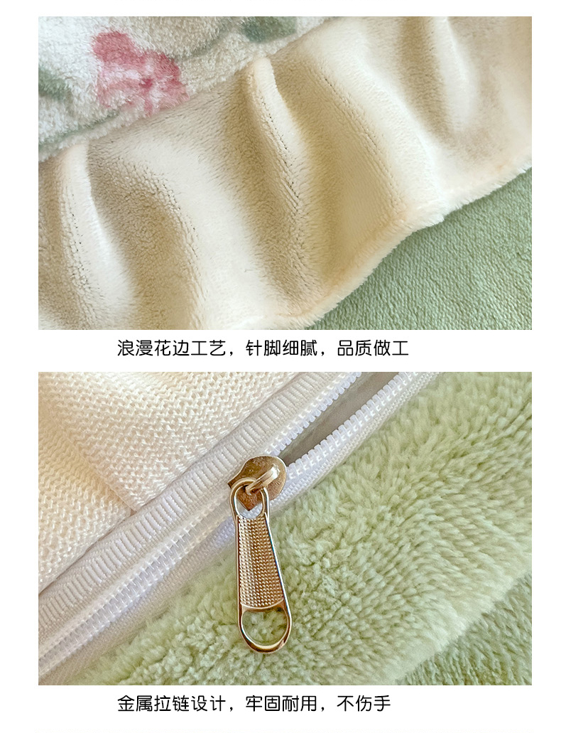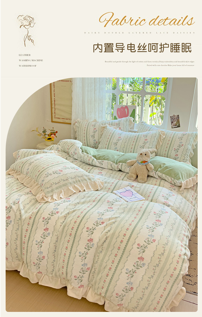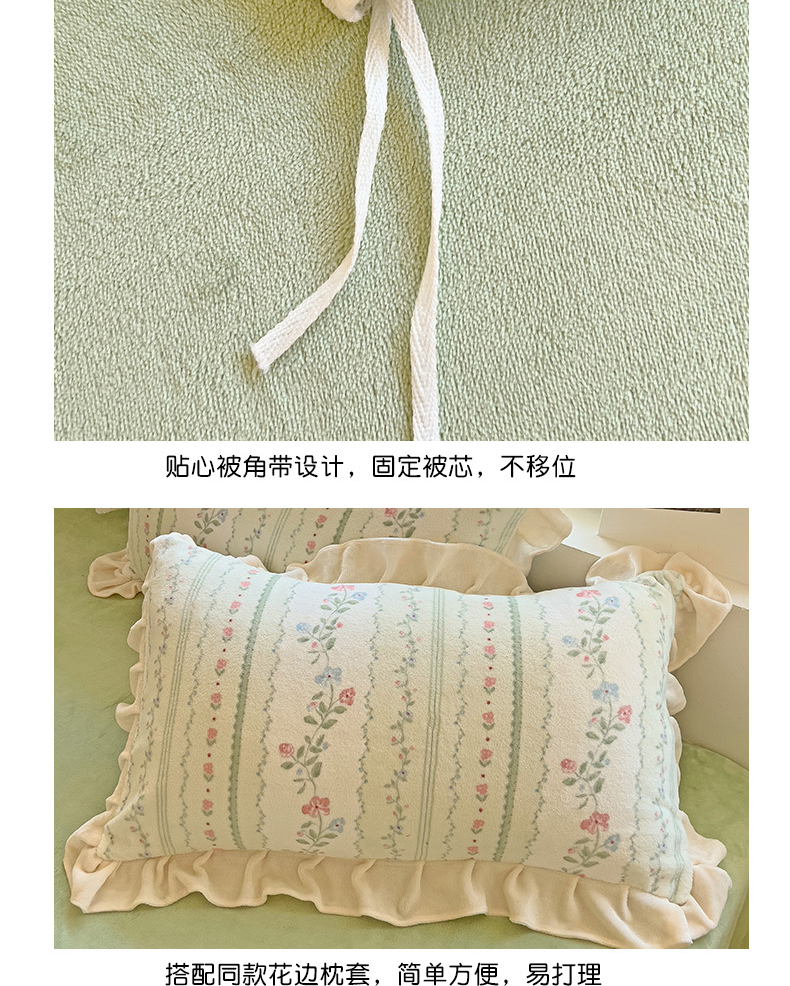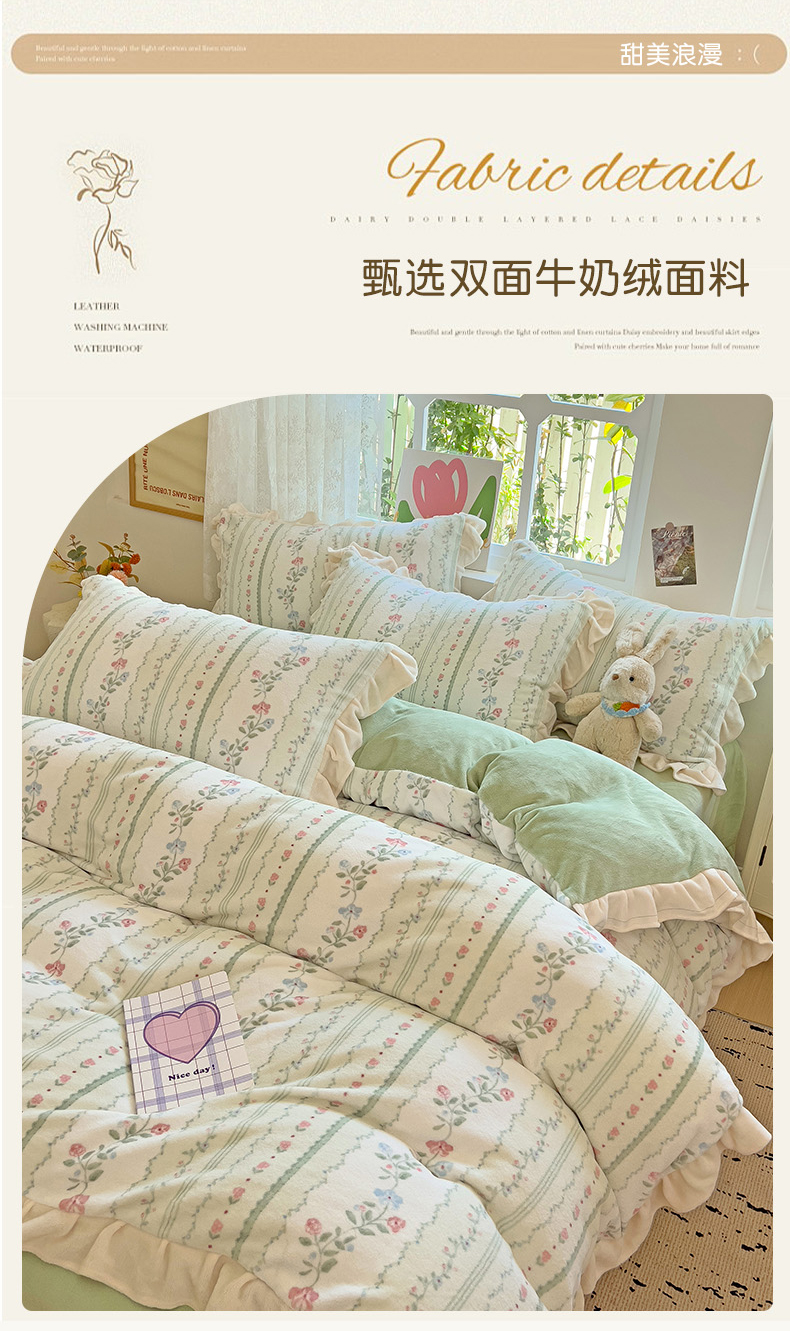 商品名称:迪梦姿家纺 2025新款牛奶绒印花花边款四件套 曼林绿