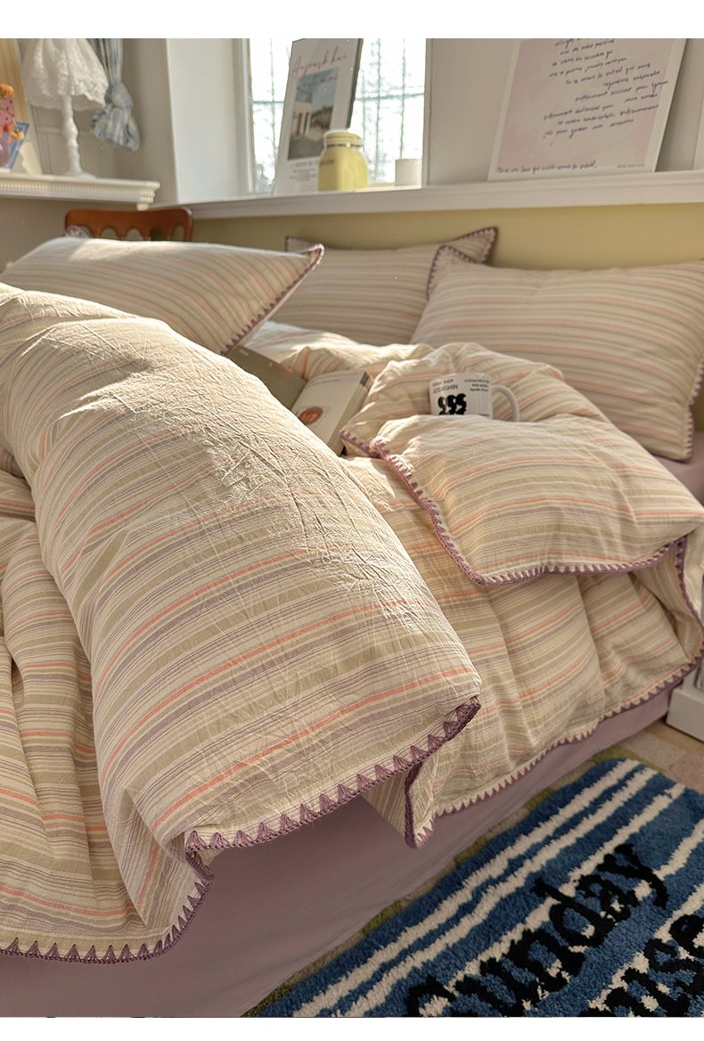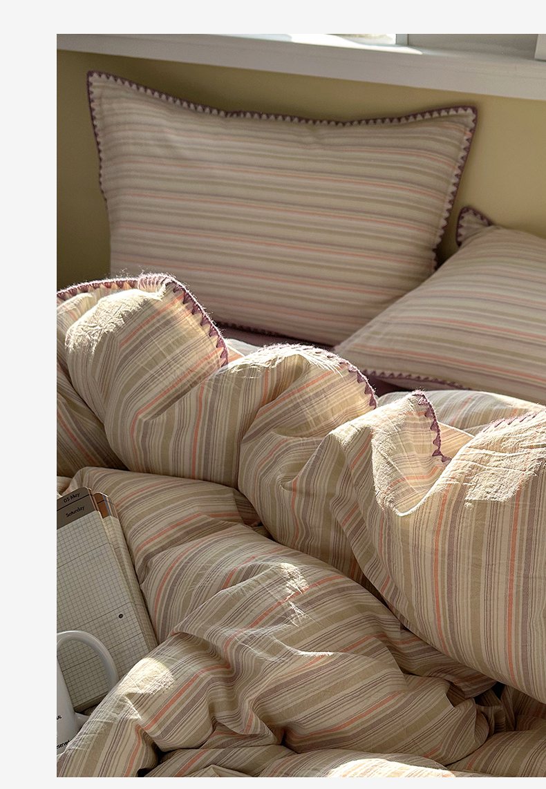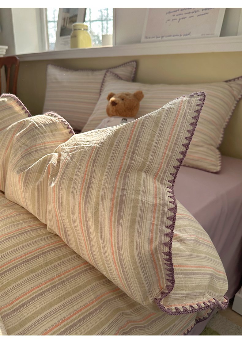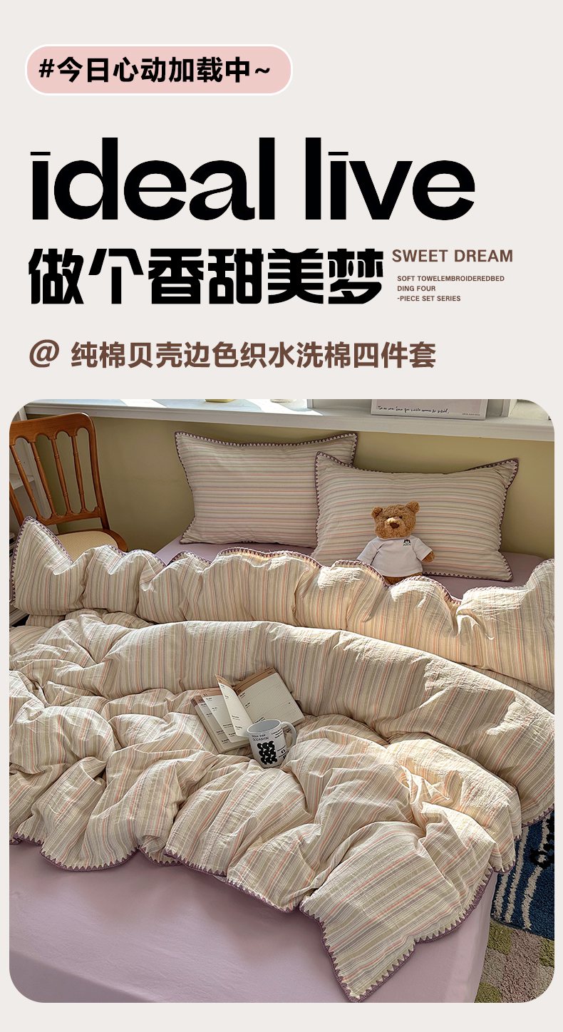 当前位置: 91家纺网 > 商品网购 > 床品套件 > 四件套 > 全棉普通四件套 > XIWEN-希文家纺 2026新款40支全棉色织水洗棉贝壳边四件套 小时光-绿