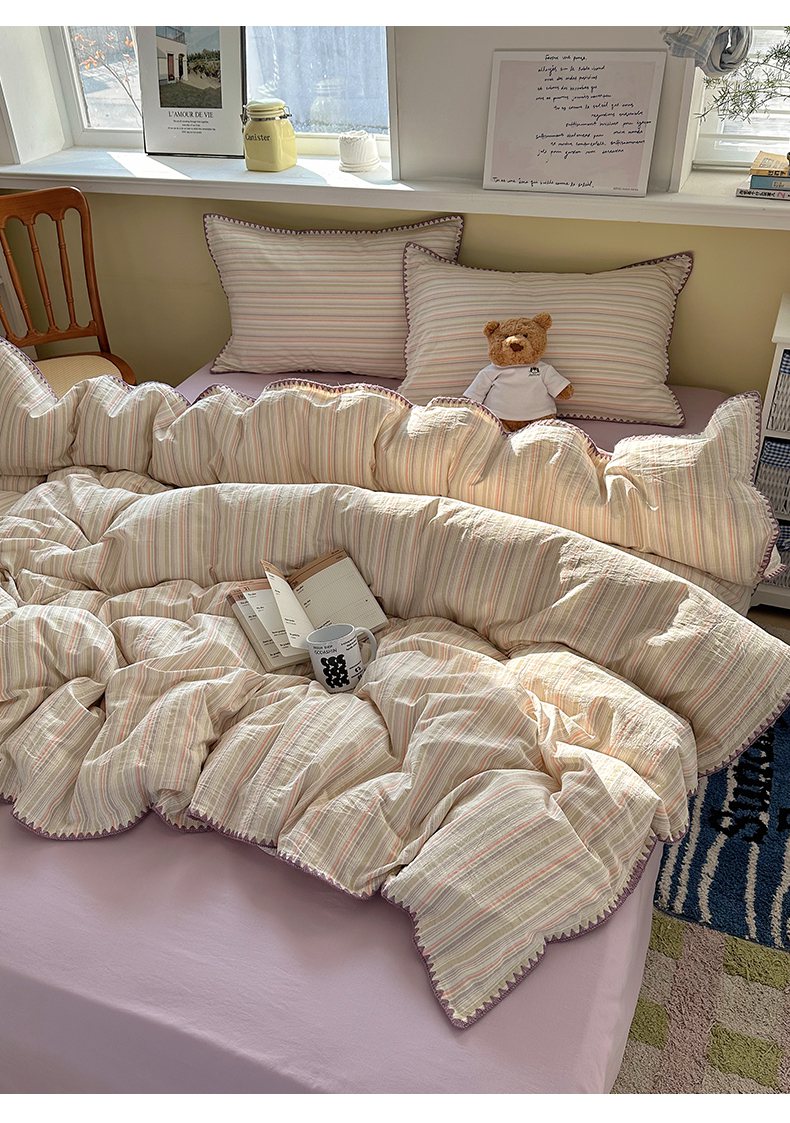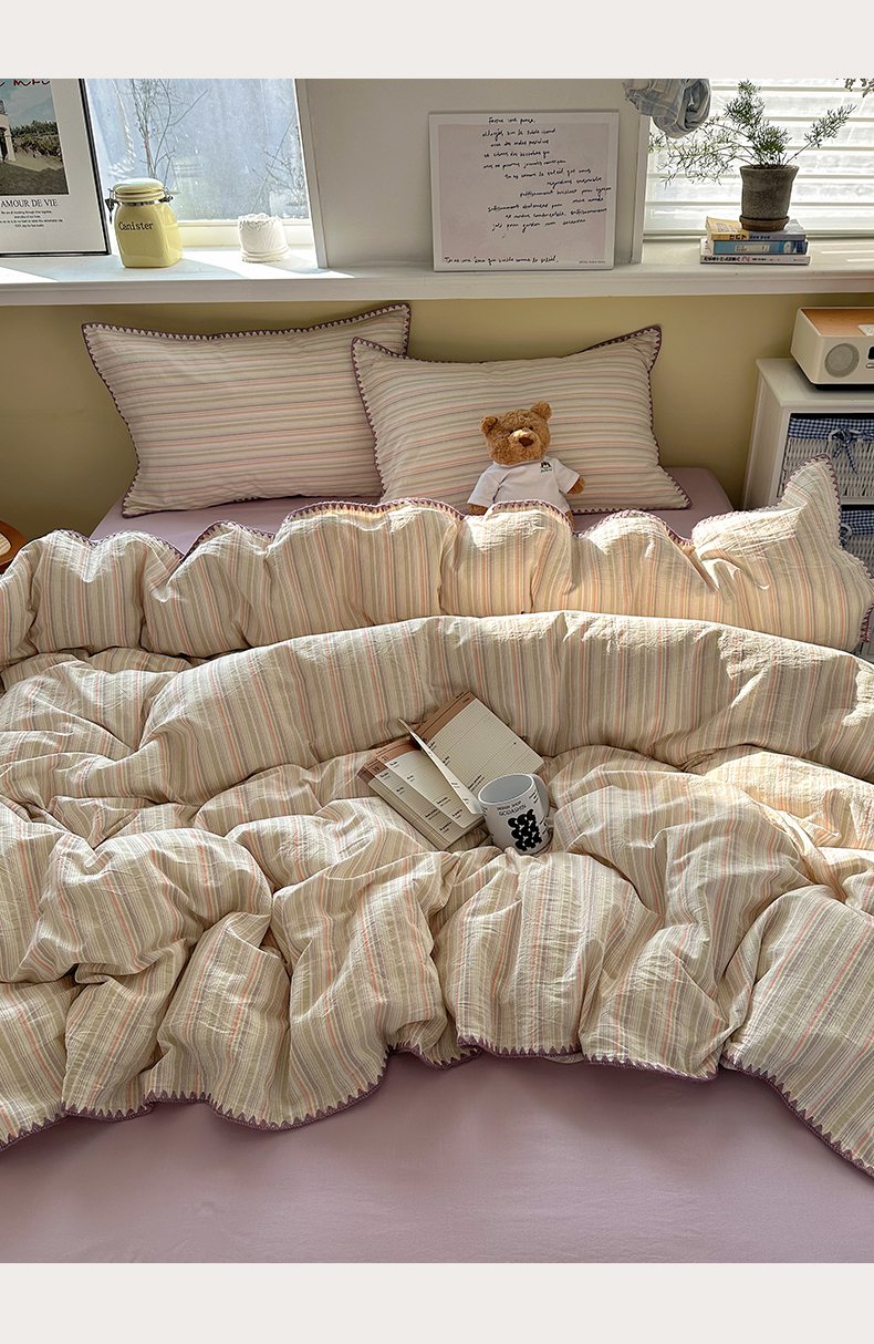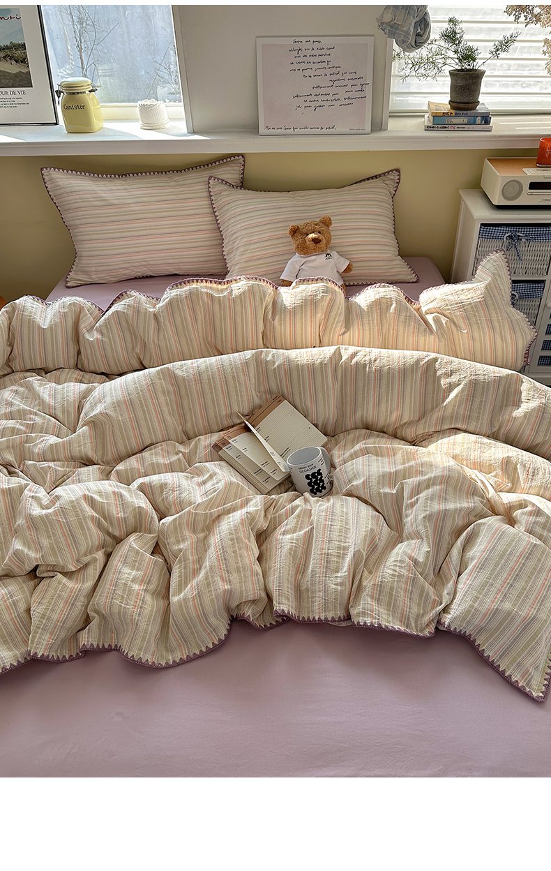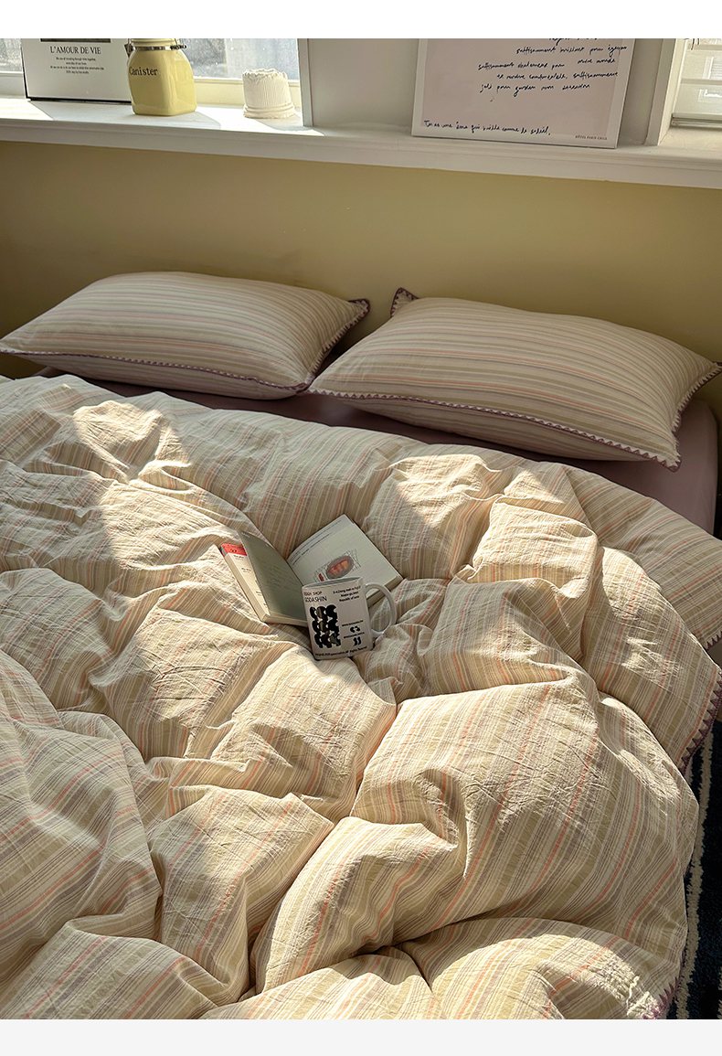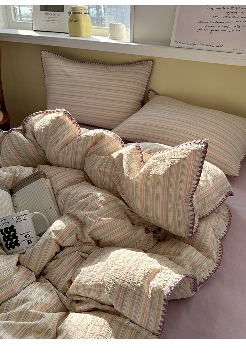 当前位置: 91家纺网 > 商品网购 > 床品套件 > 四件套 > 全棉普通四件套 > XIWEN-希文家纺 2026新款40支全棉色织水洗棉贝壳边四件套 小时光-绿