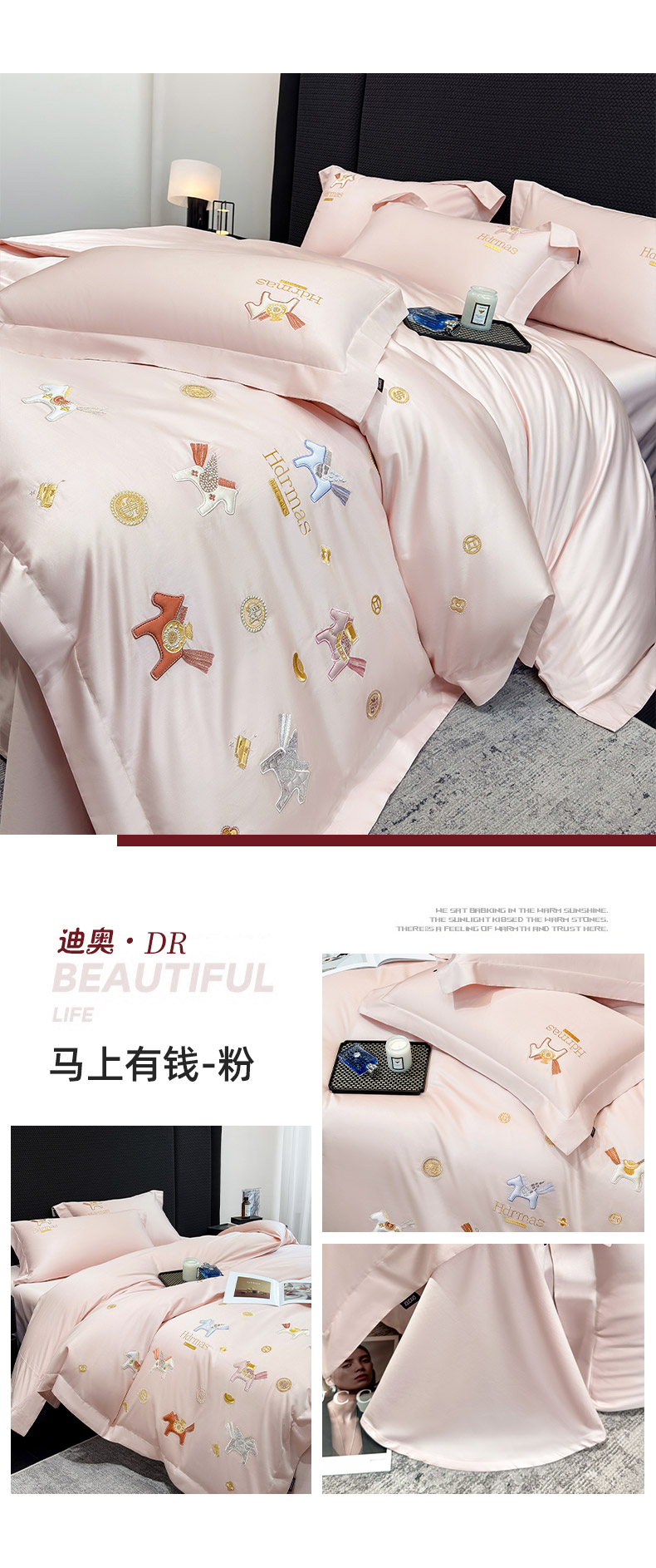 (总) 2026新款【迪奥】马年50S双股A类长绒棉纯棉四件套100全棉新年刺绣被套床单,马上有钱-红,马上有钱-金,马上有钱-橙,马上有钱-粉