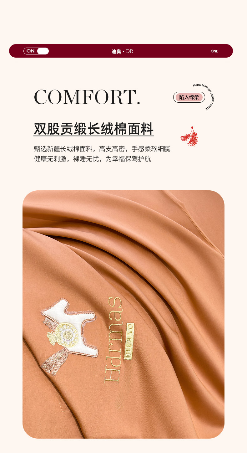 商品名称: 2026新款【迪奥】马年50S双股A类长绒棉纯棉四件套100全棉新年刺绣被套床单 马上有钱-橙