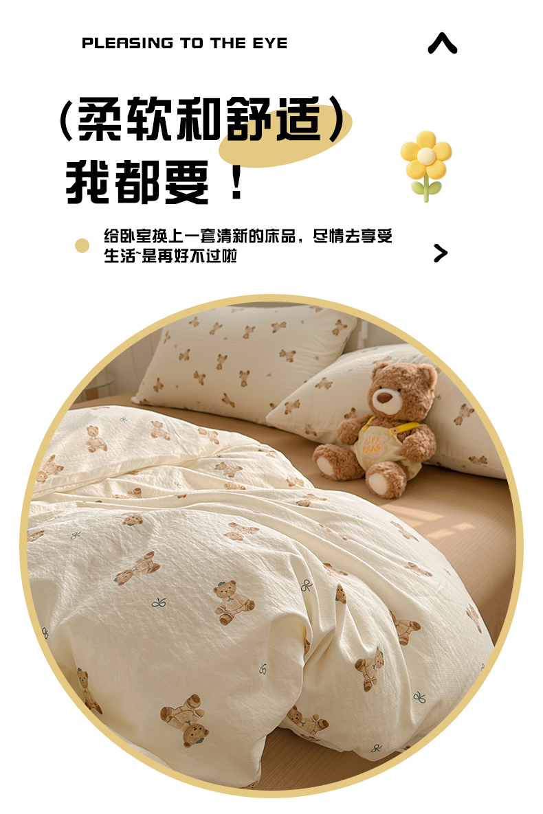 当前位置: 91家纺网 > 商品网购 > 床品套件 > 四件套 > 其它四件套 > 多品家纺 2026新款奶呼呼超柔云感双层纱系列四件套 熊多多