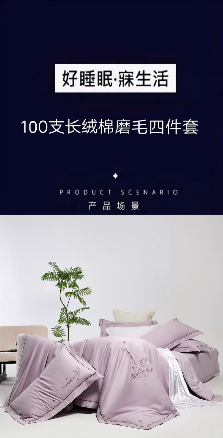 梦丝语家纺秋冬婚庆送礼居家高端100支长绒棉磨毛平绣加毛巾绣四件套,柏拉图-浪漫紫