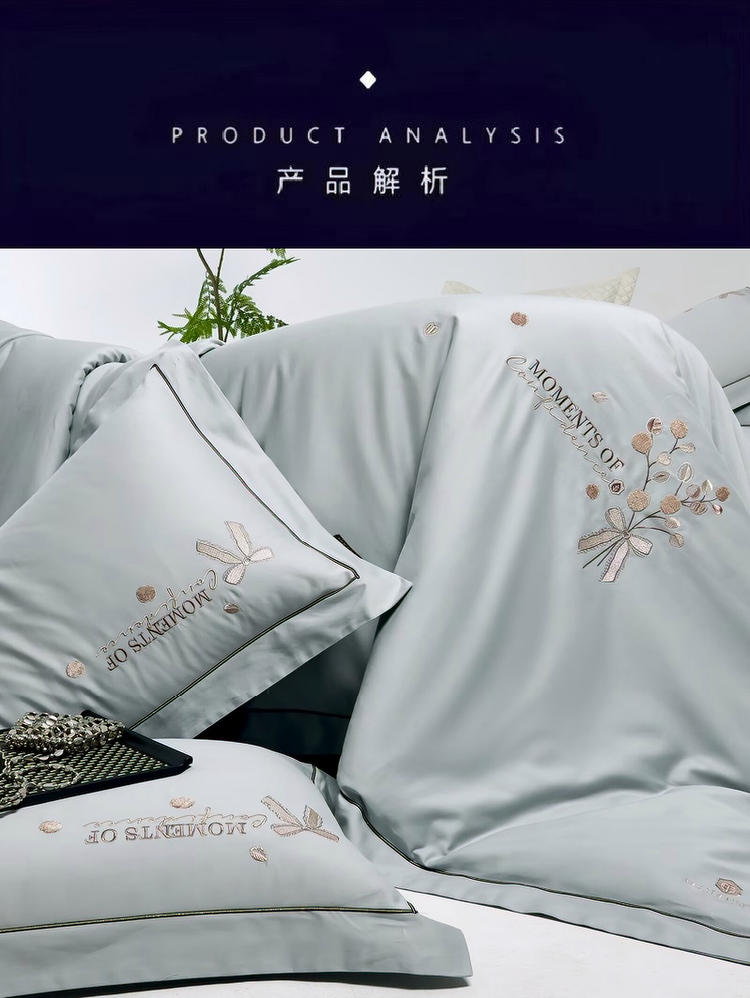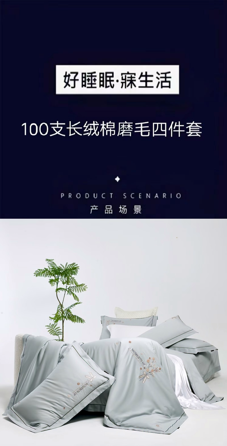 梦丝语家纺秋冬婚庆送礼居家高端100支长绒棉磨毛平绣加毛巾绣四件套,柏拉图-冰川蓝