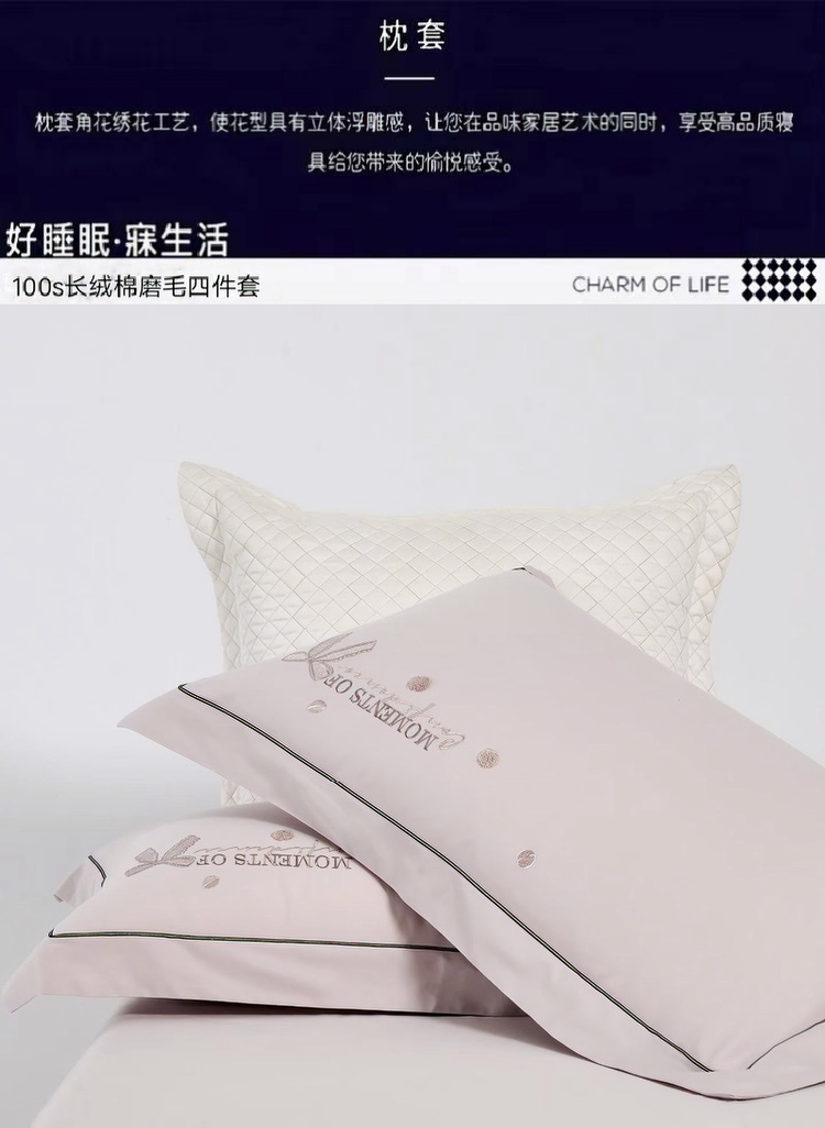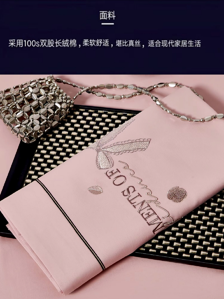 梦丝语家纺秋冬婚庆送礼居家高端100支长绒棉磨毛平绣加毛巾绣四件套,柏拉图-豆沙