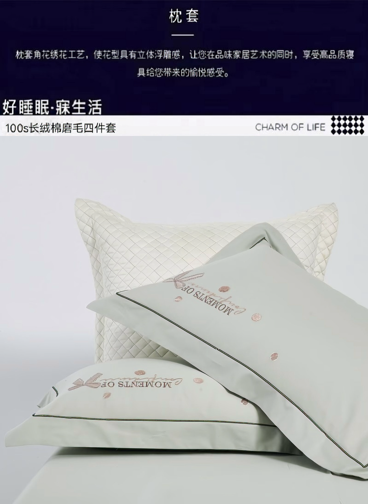 梦丝语家纺秋冬婚庆送礼居家高端100支长绒棉磨毛平绣加毛巾绣四件套,柏拉图-青翠绿