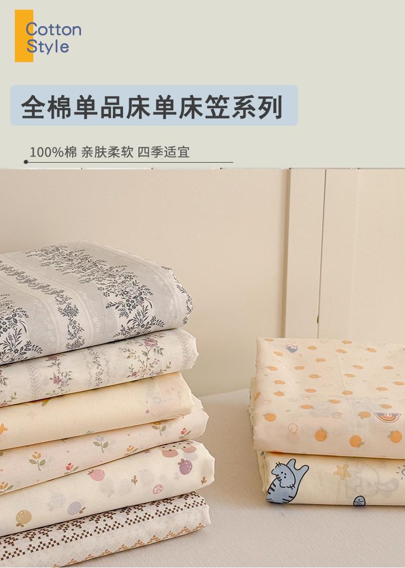 (总)麦伦家居 2026新款卡通小清新全棉纯棉单床单床笠床单床笠单件单品床单床笠,单品A版奶牛猫,单品A版花千朵,单品A版蘑菇屋,单品A版英伦格兰,费尔岛小熊,粉玫瑰,果子象,含羞草,机灵猫,快乐小星星,兰花草,莓果熊,茹伊,幸运星