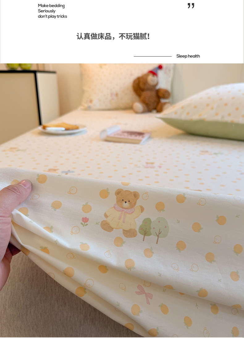 • 91家纺网 家纺一手货源 找家纺 麦伦家居 2026新款卡通小清新全棉纯棉单床单床笠床单床笠单件单品床单床笠 莓果熊