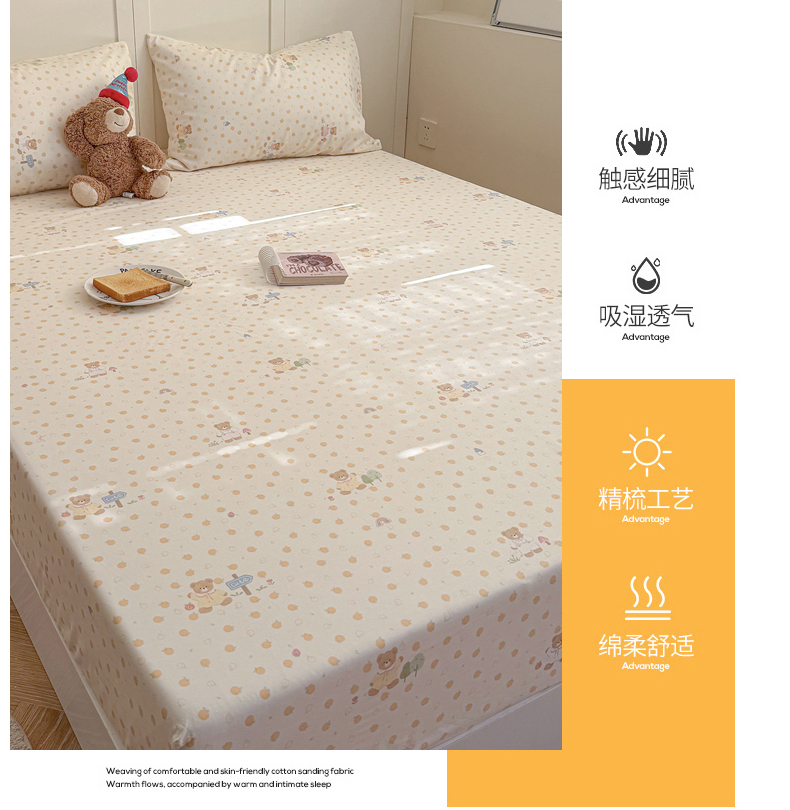 麦伦家居 2026新款卡通小清新全棉纯棉单床单床笠床单床笠单件单品床单床笠 莓果熊