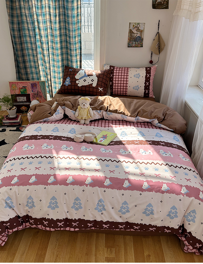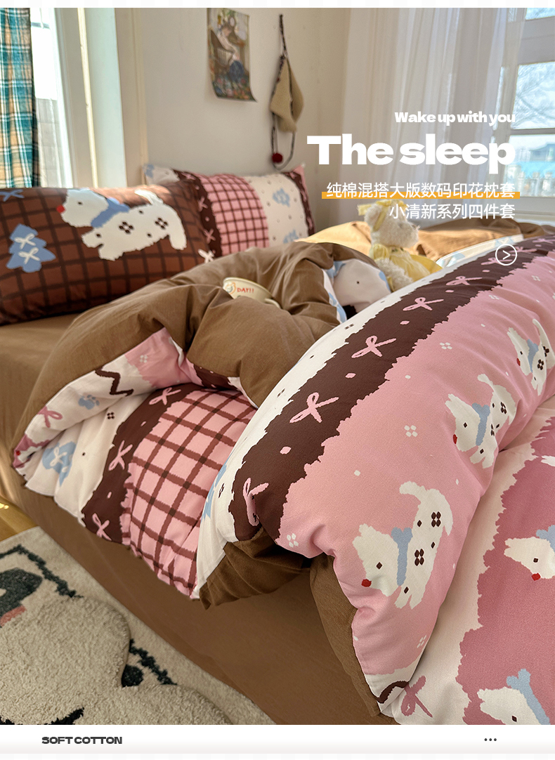 桃子家居 2026新款纯棉混搭大版数码印花枕套小清新猫咪可爱系列四件套 棉混搭-甜美童话狗