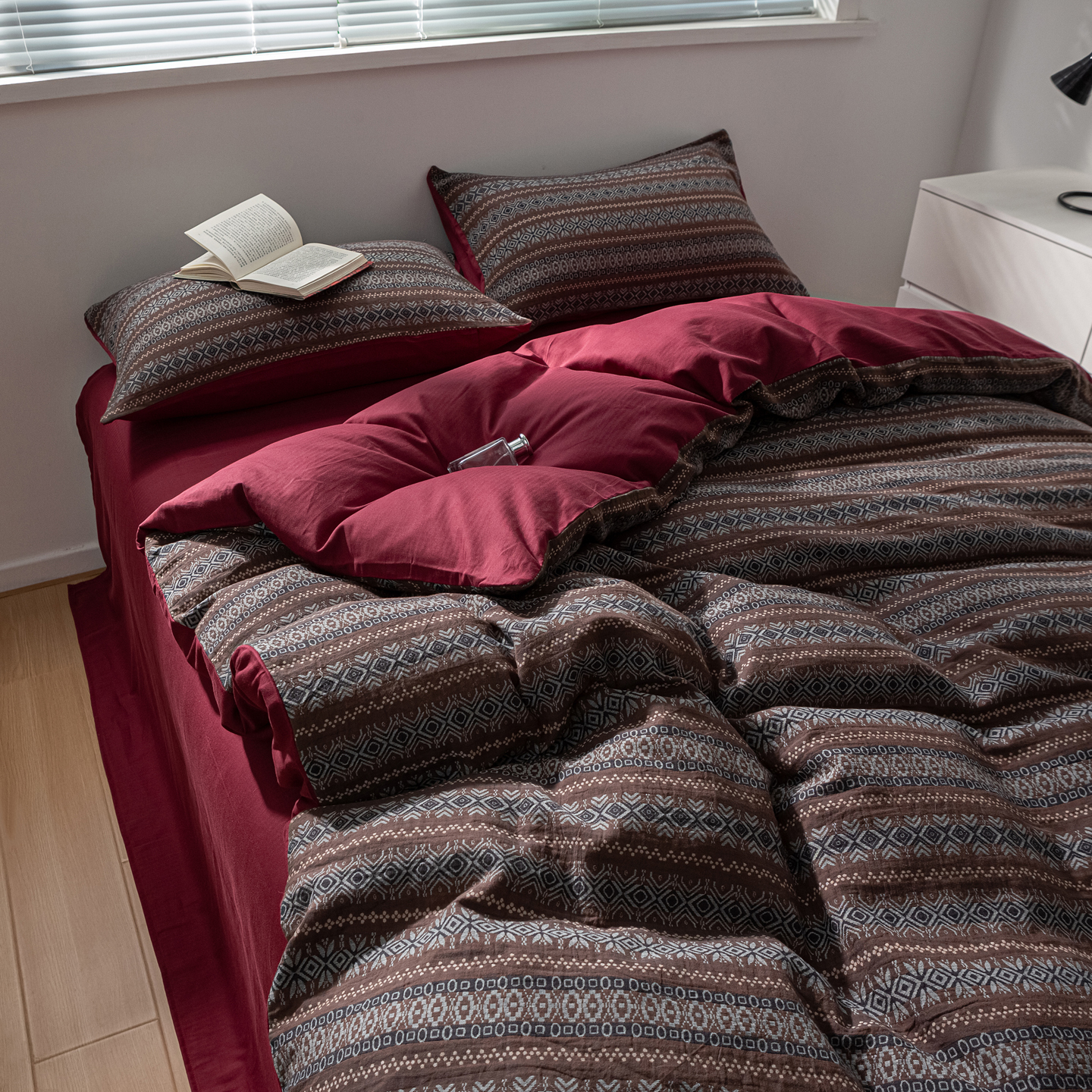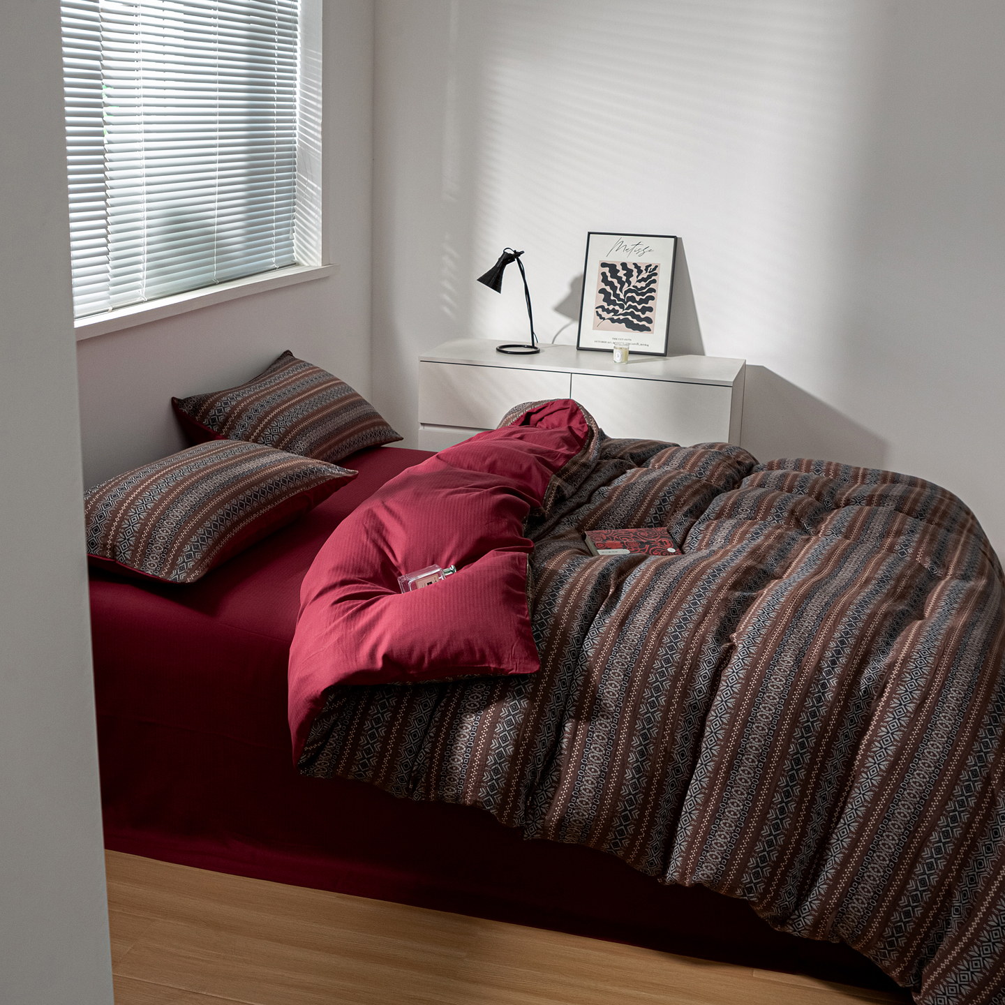 商品名称:双层纱家居 2025新款复古情书AB版拉链款全棉纯棉色织提花四件套 复古情书-棕