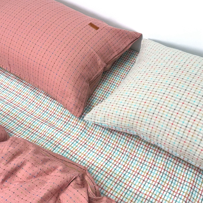 商品名称:双层纱家居 2025新款彩虹格全棉纯棉色织提花四件套 彩虹格米白