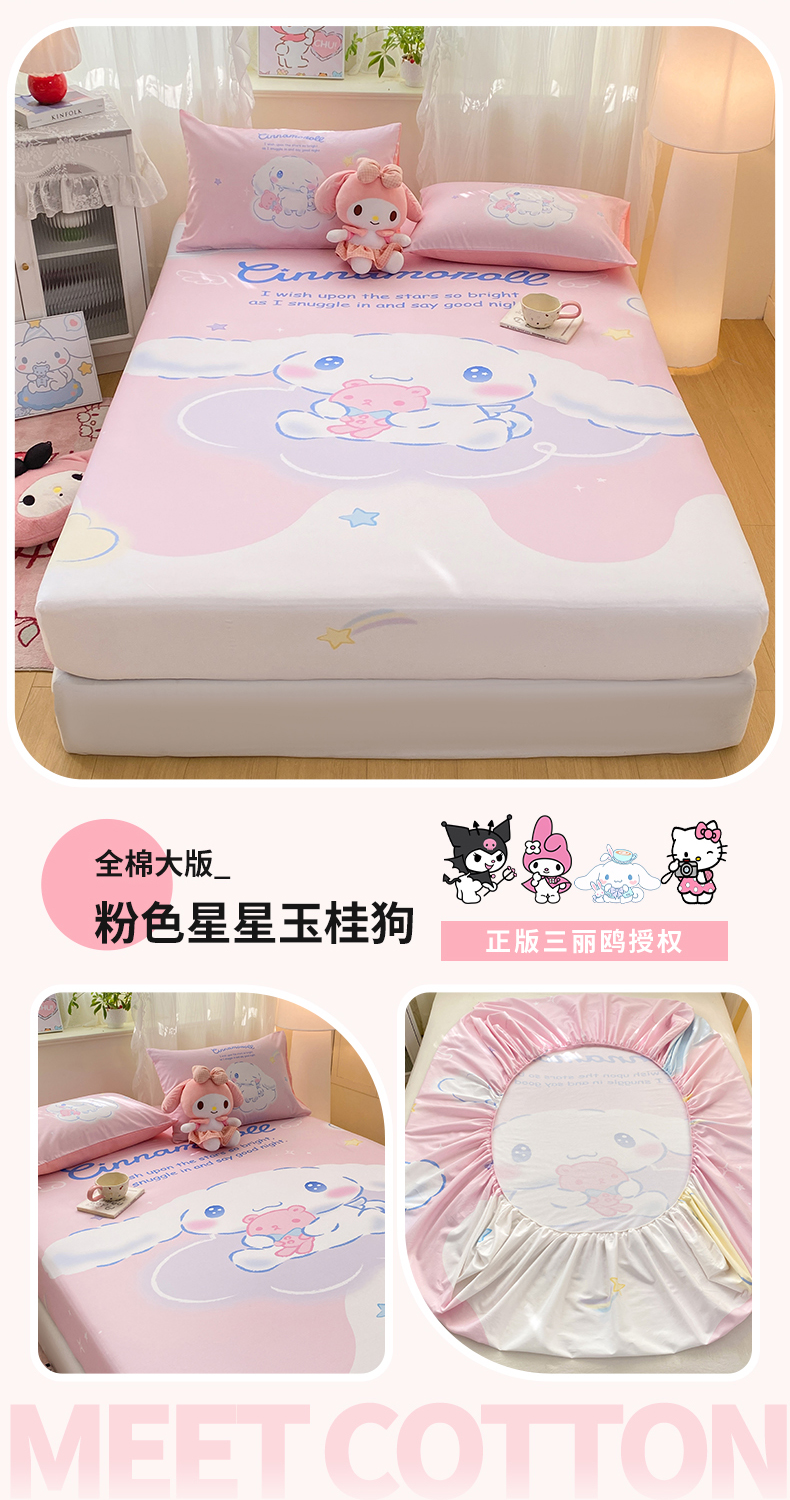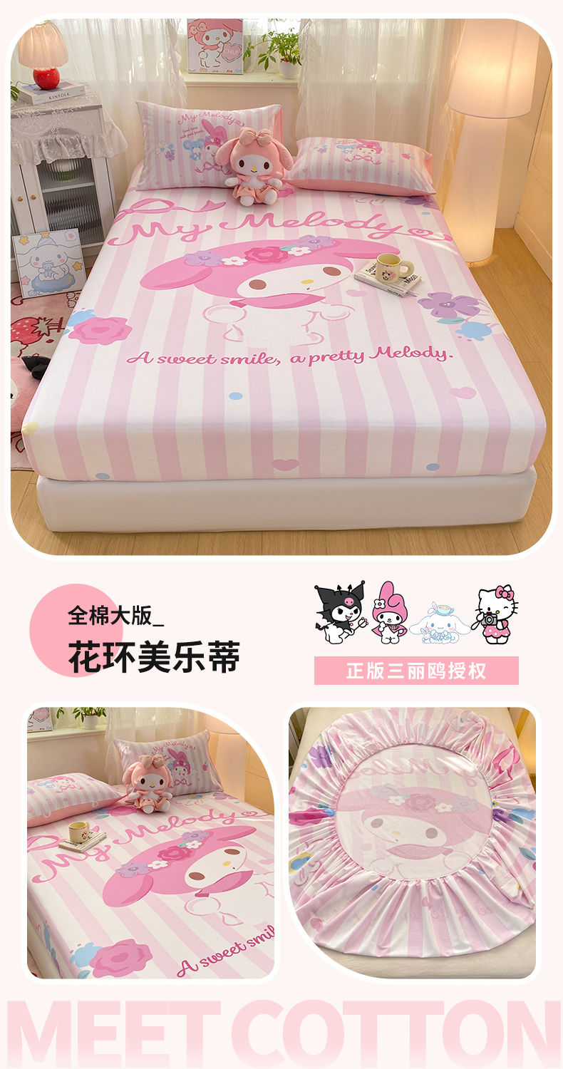 博雅 2026新款三丽欧大版全棉纯棉单床笠床笠单件 马卡龙美乐蒂