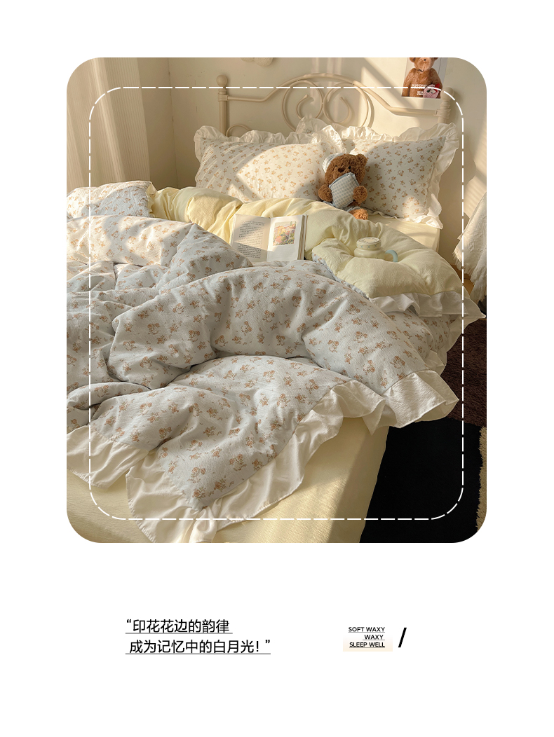 当前位置: 91家纺网 > 商品网购 > 床品套件 > 四件套 > 其它四件套 > 美乐迪家纺 2026新款云感双层纱花边四件套 花园小熊