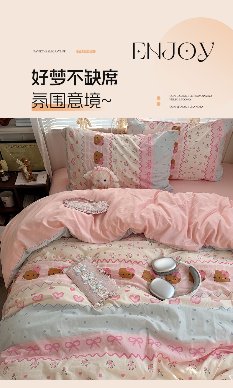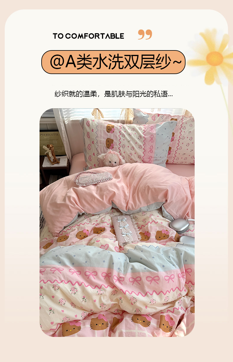 当前位置: 91家纺网 > 商品网购 > 床品套件 > 四件套 > 双层纱四件套 > 原素 2026新款小清新水洗双层纱四件套 费尔岛黑皮猫