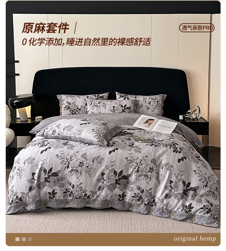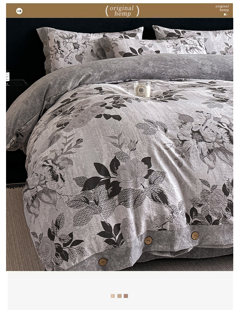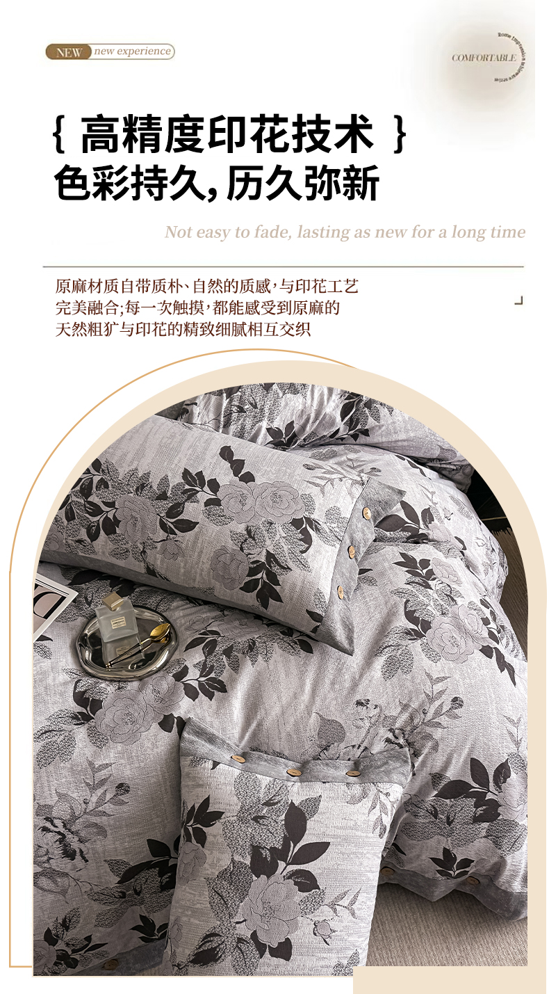 当前位置: 91家纺网 > 商品网购 > 床品套件 > 四件套 > 其它四件套 > 爱彼家纺 2026新款四季款纽扣款轻奢原麻四件套-套件系列一 轻奢原麻-相思-灰