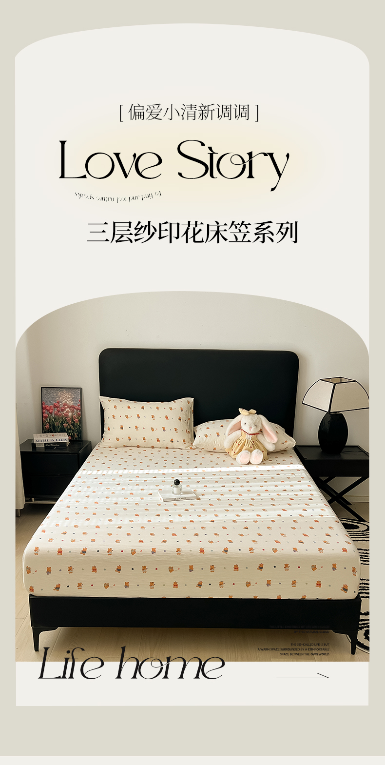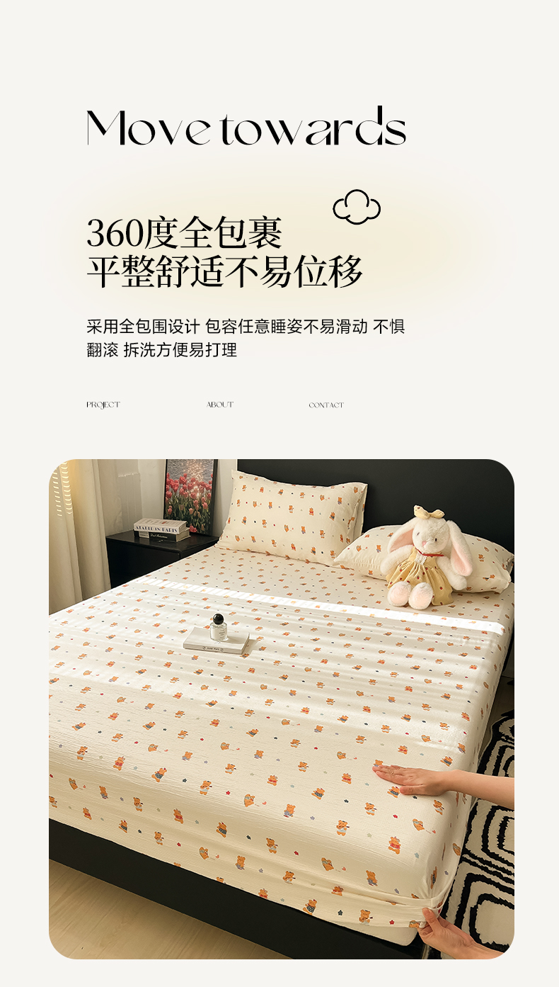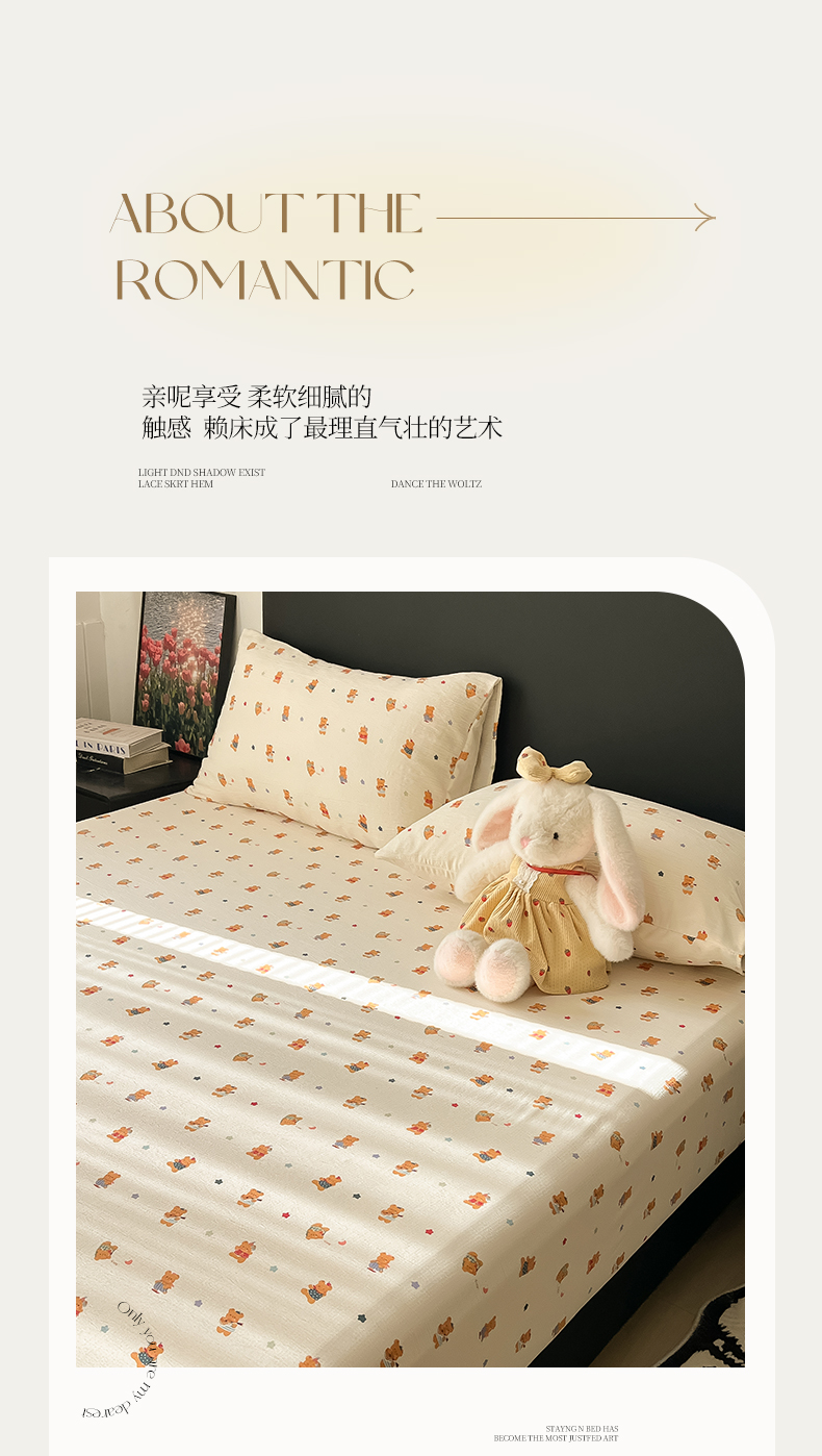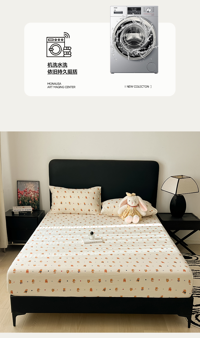• 91家纺网 家纺一手货源 找家纺 韩巢家纺 2026新款三层纱单床笠热销款防滑床笠单件 红茶小熊