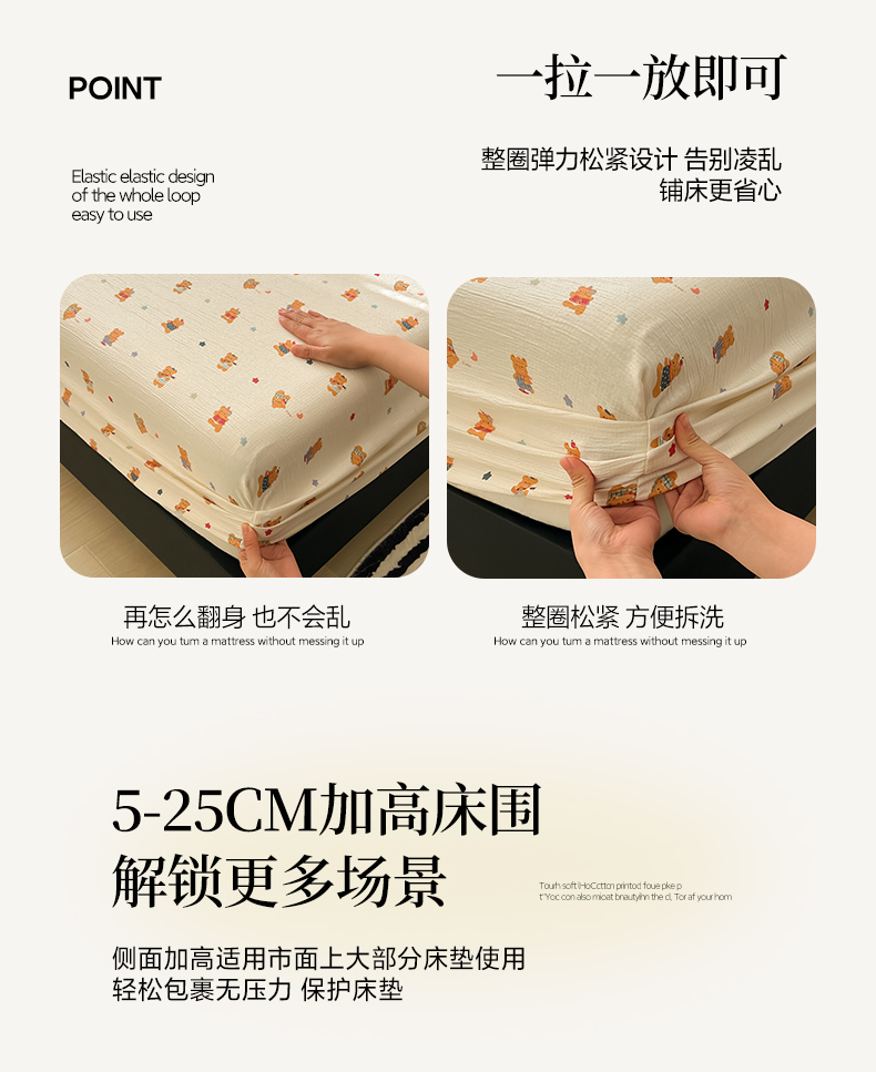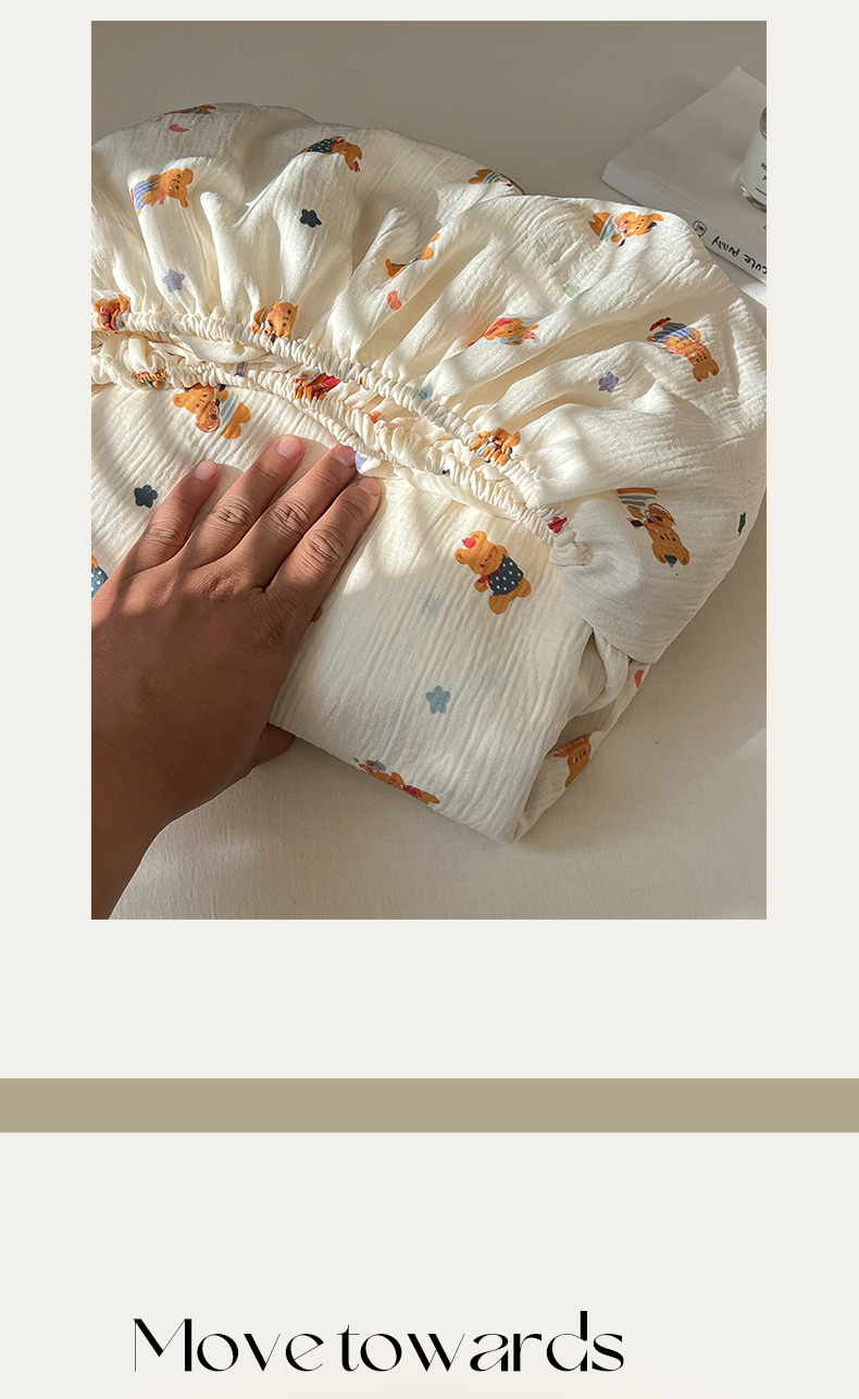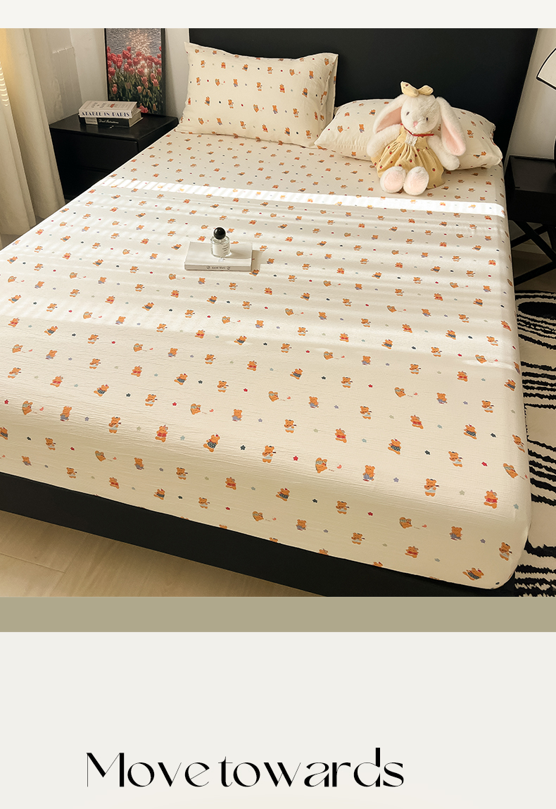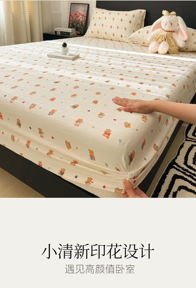 韩巢家纺 2026新款三层纱单床笠热销款防滑床笠单件 红茶小熊