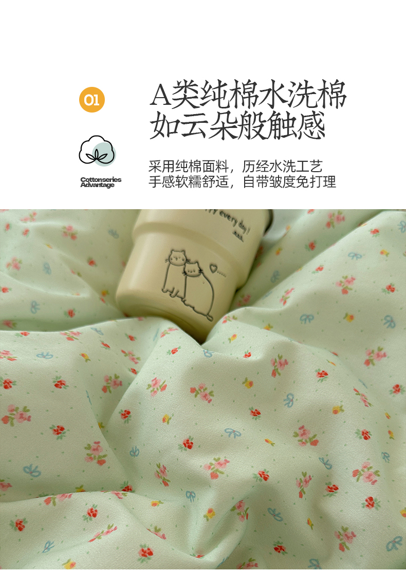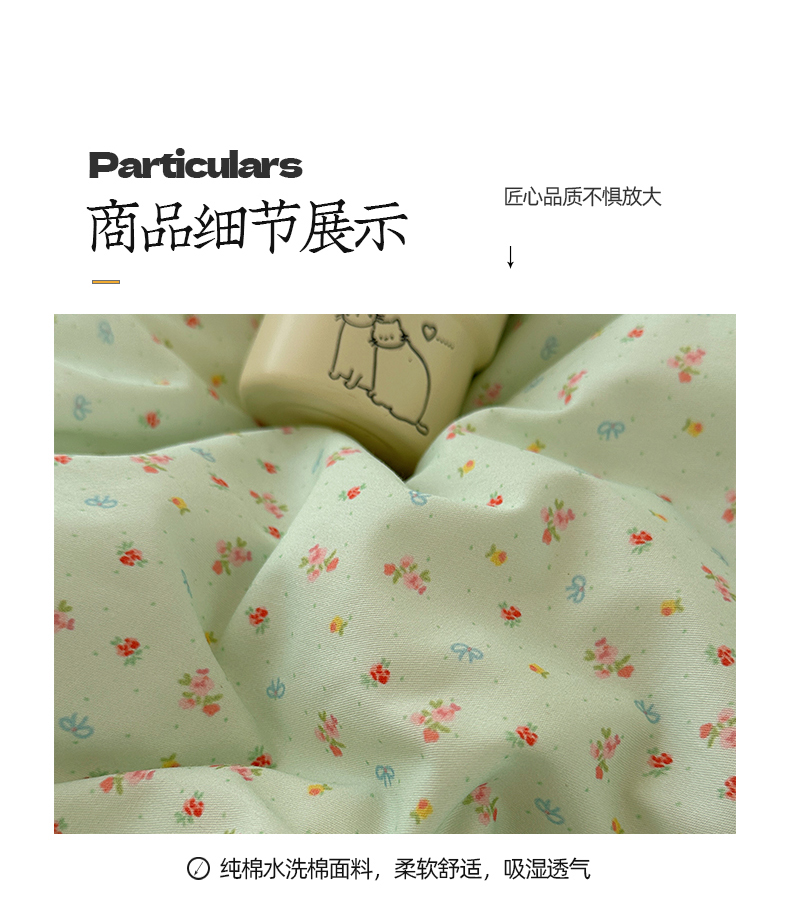 商品名称:桃子家居 2026新款A类纯棉水洗棉ins韩系小清新碎花混搭织标工艺色织水洗棉四件套系列 水洗棉-青雾春日