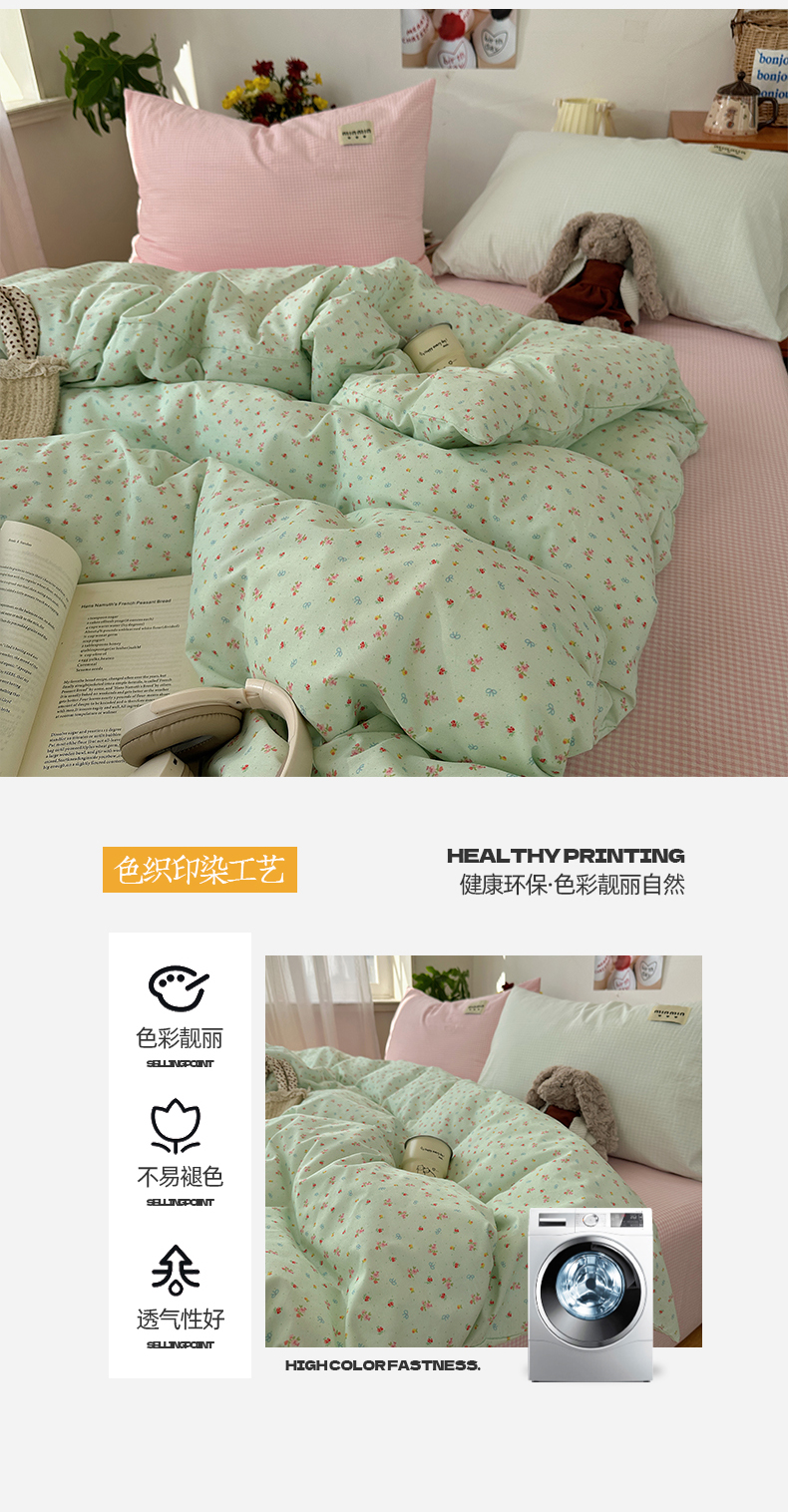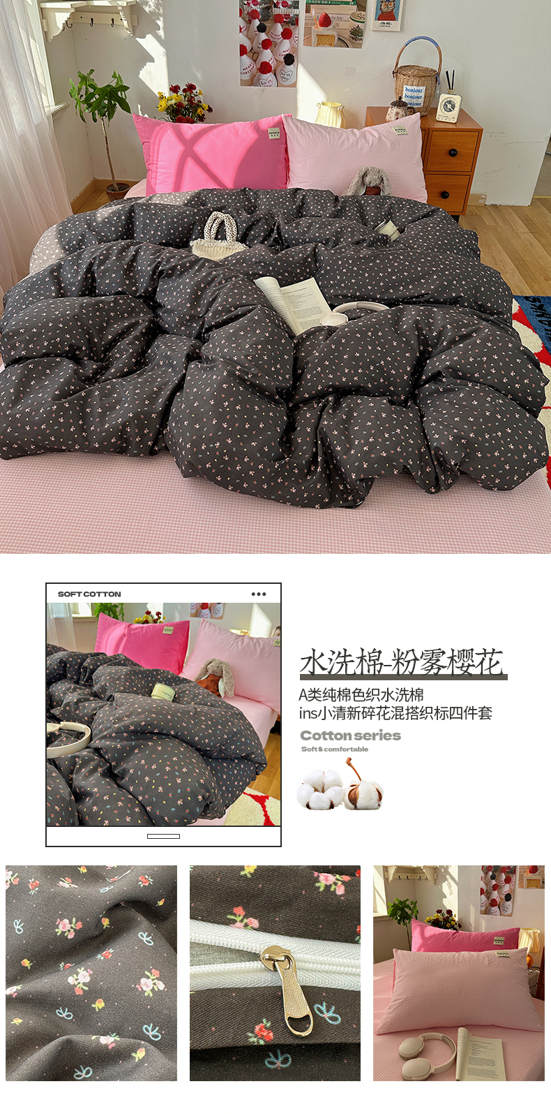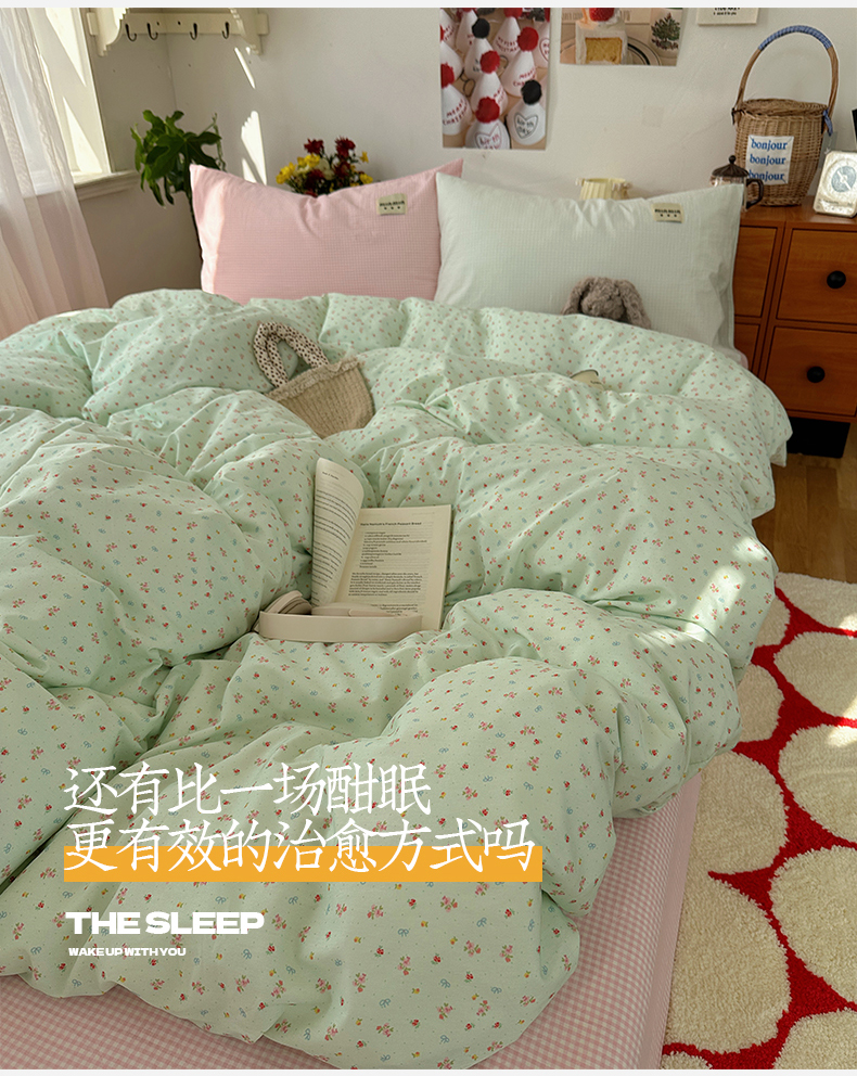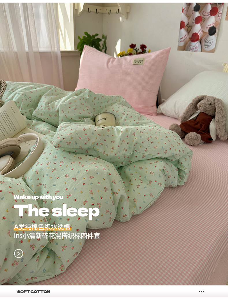 (总)桃子家居 2026新款A类纯棉水洗棉ins韩系小清新碎花混搭织标工艺色织水洗棉四件套系列,水洗棉-粉雾樱花,水洗棉-蓝雾花黛,水洗棉-栗雾来信,水洗棉-青雾春日,水洗棉-桃雾花甜,水洗棉-云雾星花