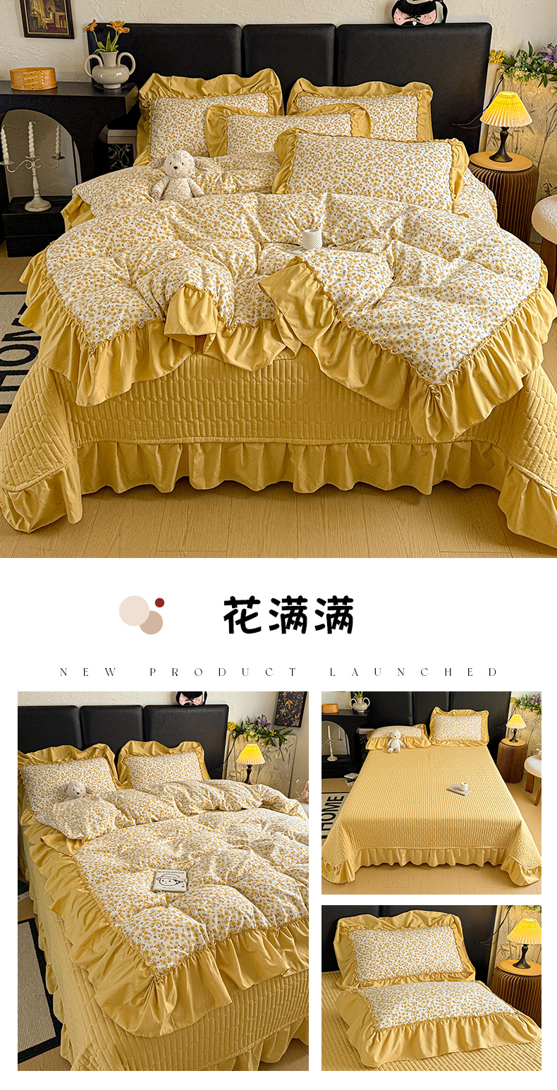 (总)富米莱(原臻工厂) 2026春夏新款仿棉A类韩系大花边床盖床裙四件套,小杏芙,波点汽球,悠悠花香,烟火气星辰,小花蓝,小花粉,晚樱落海,山樱漫岛,玫瑰庄园,花影,耳机猫猫,动物世界,七彩点点,艾利花园