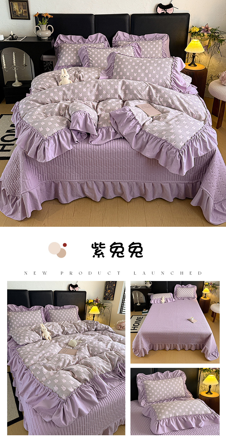 富米莱(原臻工厂) 2026新款韩系古法韩国水洗棉云棉大布袋法式浪漫大花边床盖夏凉被床盖四件套 奶油兔