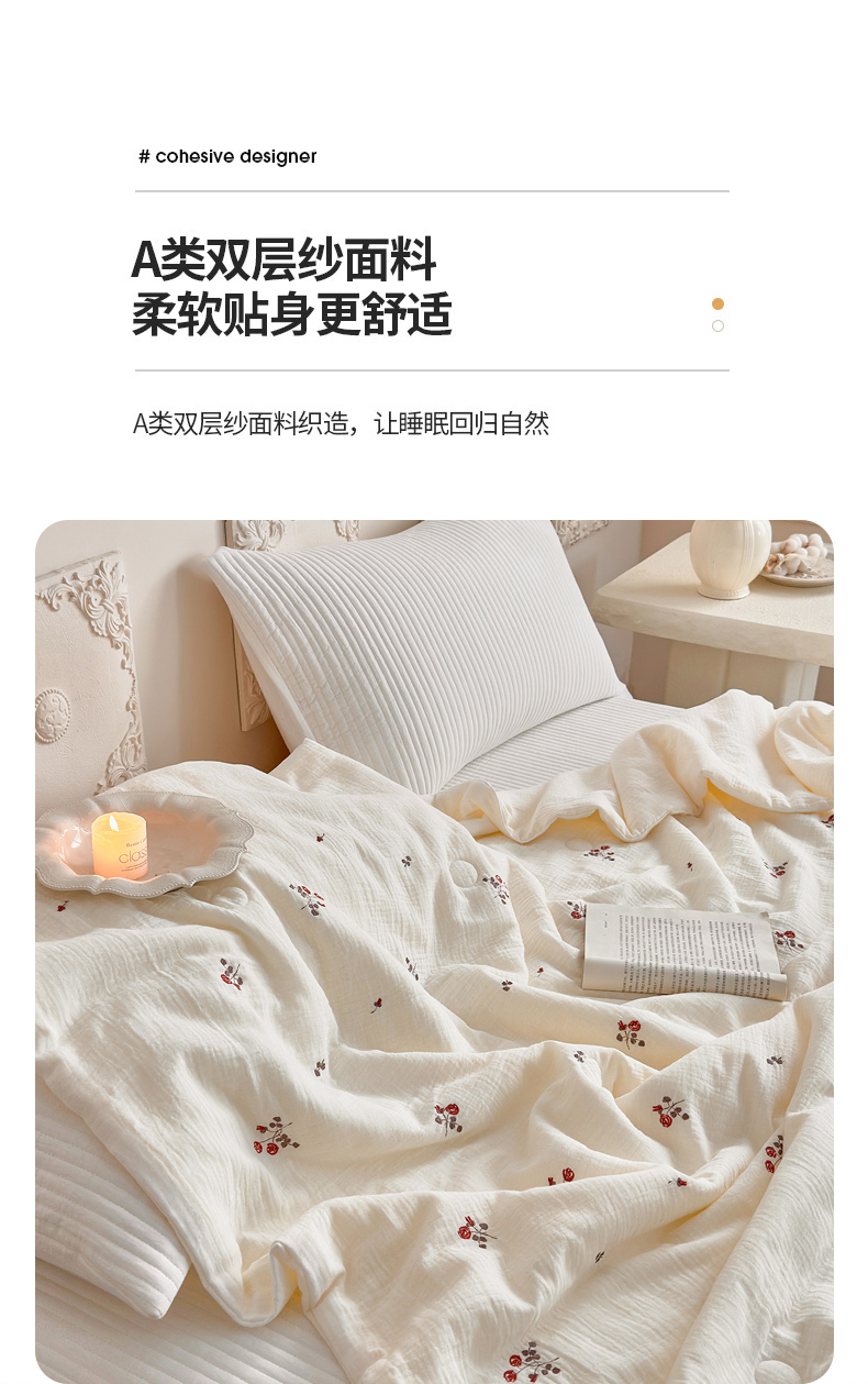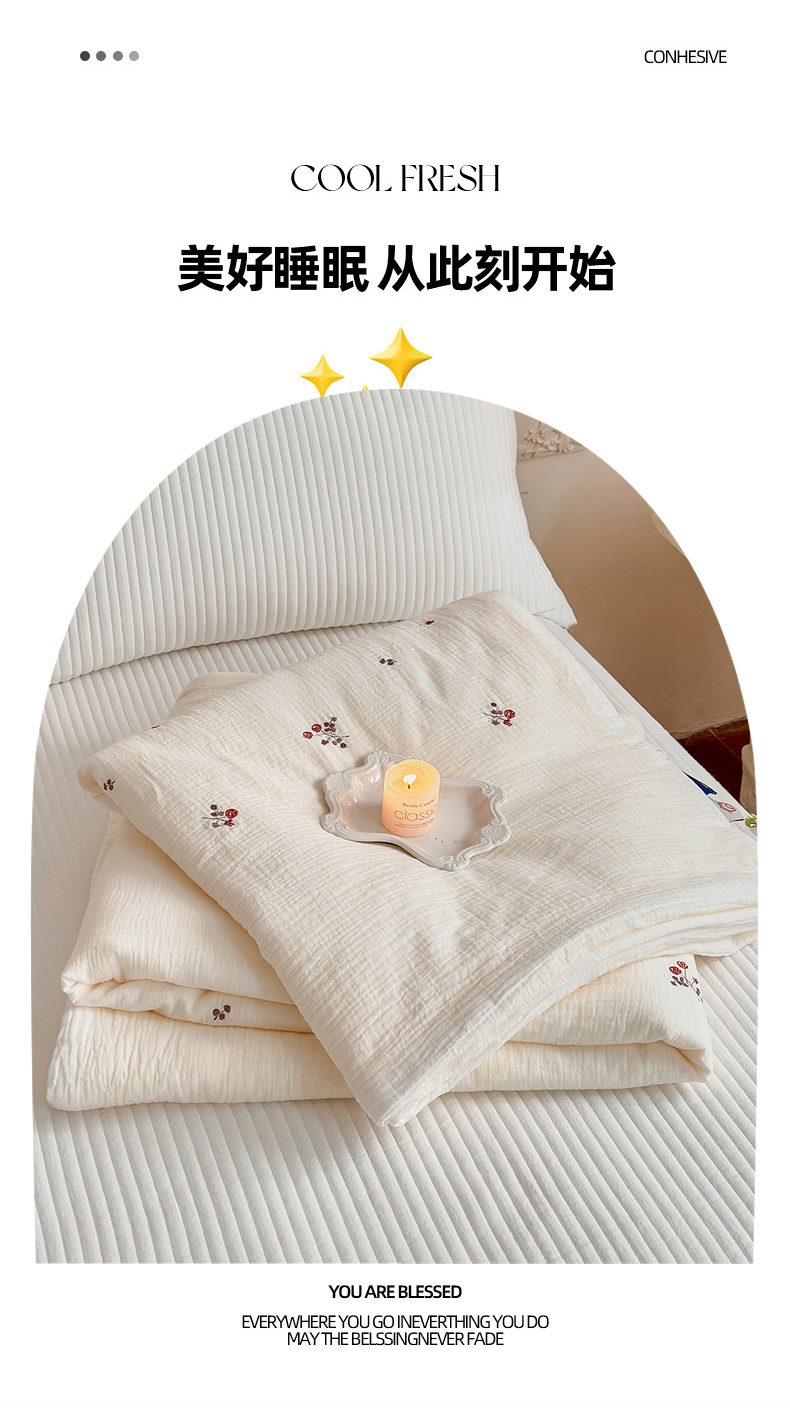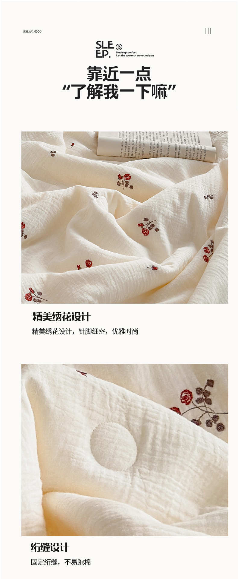 • 91家纺网 家纺一手货源 找家纺 宇航家纺 2026新款全棉纯棉皱皱纱刺绣款夏被夏凉被空调被床盖四件套 小玫瑰