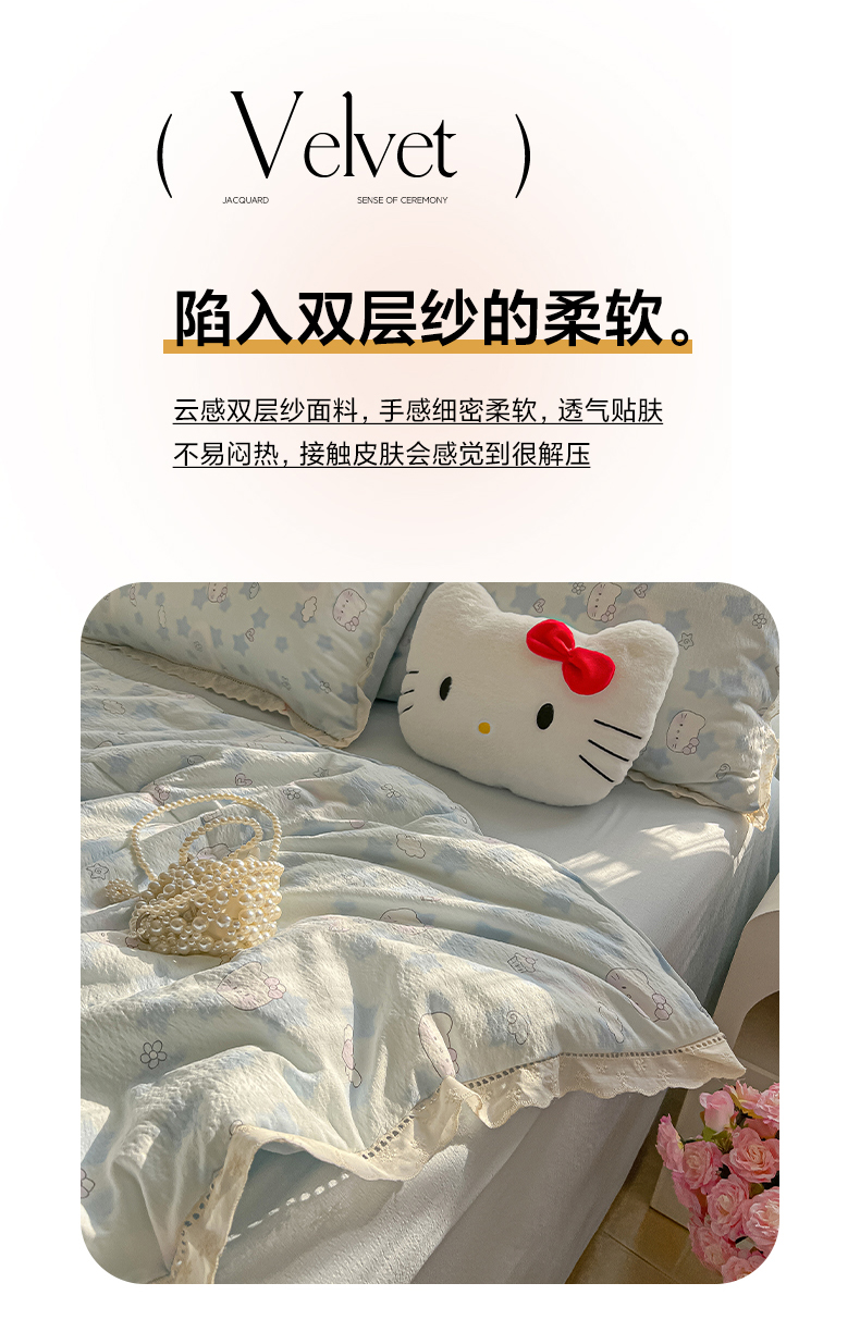 (总)罗亿家纺 2026新款小清新云感双层纱木棉四件套系列(小红书热款推荐),kitty甜梦窝,春日限定,点点小狗,海盐甜心,韩范小猫,赫本小姐,花花腊肠狗,花清梦,花漾kitty,花与兔,简夏,橘园,蓝蓝小奶狗,蓝萱,曼塔庄园,七里香,蔷薇絮,甜莓,甜昔,小猫数星星,小熊奶盖,星星屁屁兔,星星人后花园,星星兔,薰衣草,枝蔓,棕韵梦境