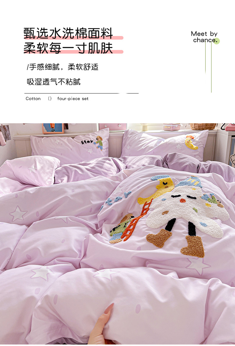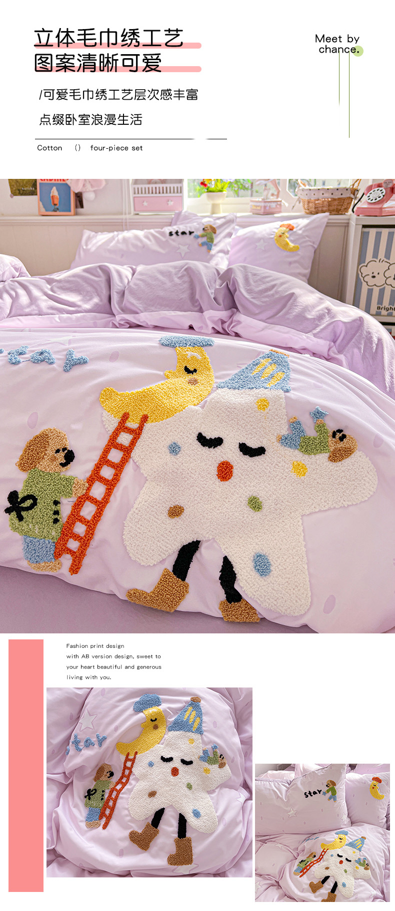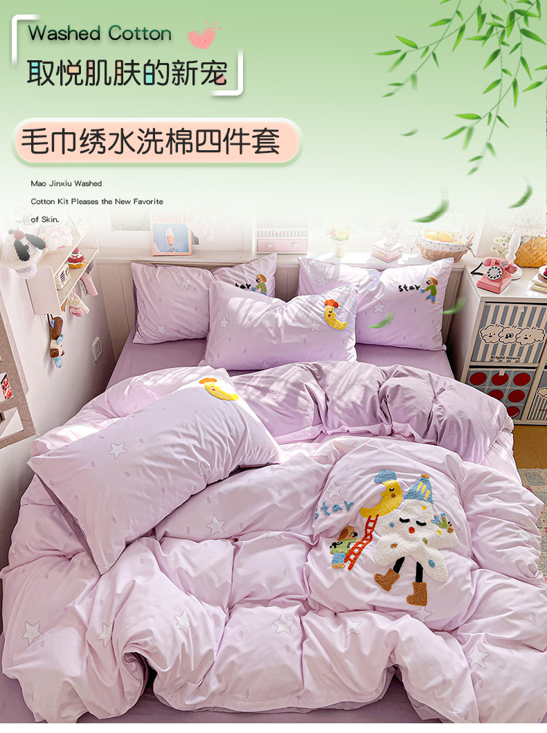 (总)田子坊(原亨通) 2026春夏新款柔肤立体毛巾绣水洗棉四件套-系列二,斑点狗,茶杯狗,花间小狗,快乐狗,蓝星小狗,萌马日记,七彩爱心,条纹兔,童话故事,云朵星-粉,云朵星-蓝