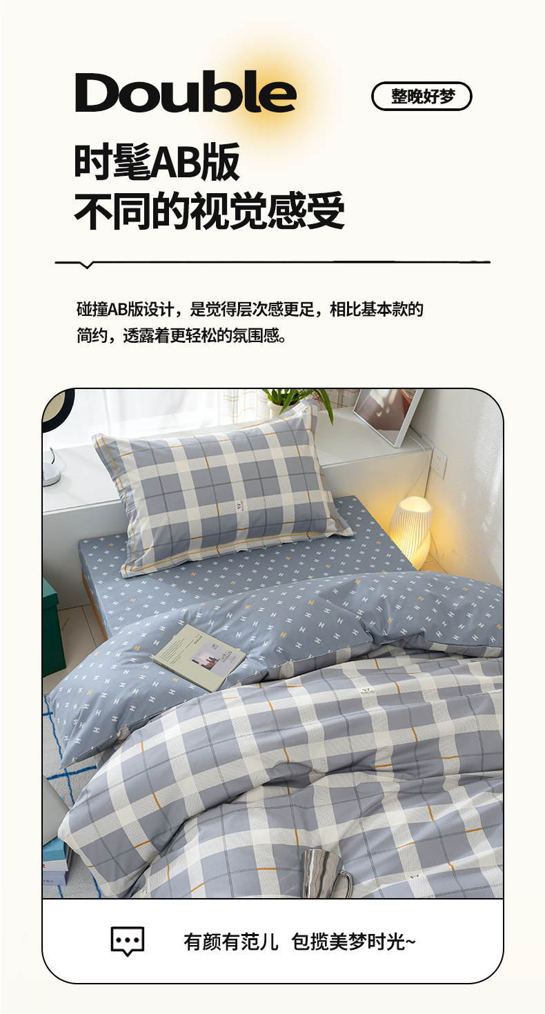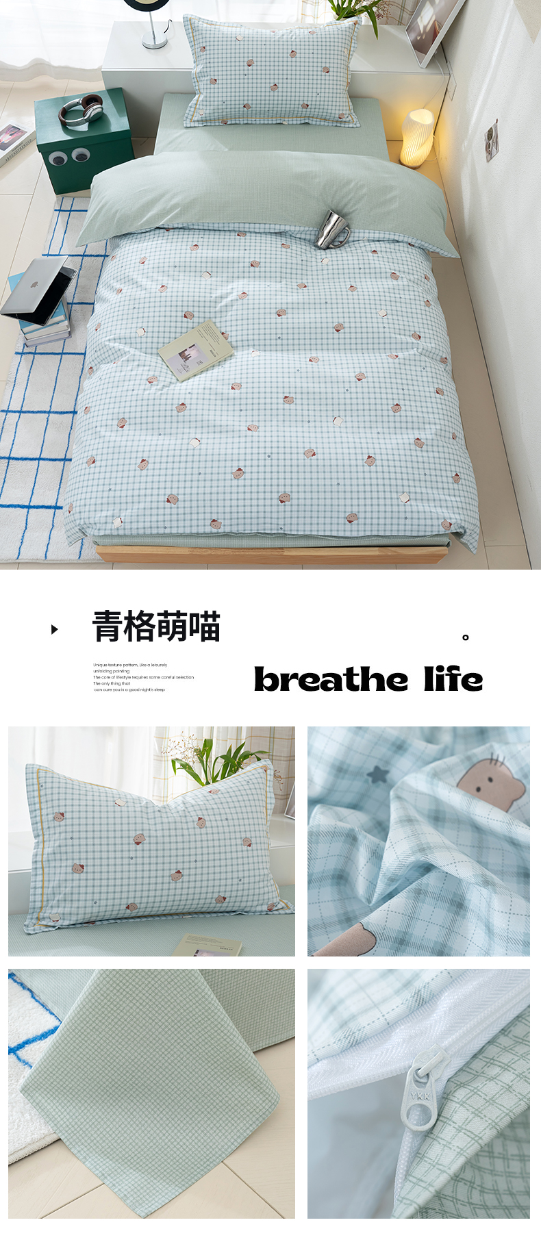 (总)良佐生活 2026新款A类铂金精梳全棉学生三件套,初遇-灰,贝里斯,云川,柚子小西,溪言-兰,格纹萌熊,溪言-粉,青格萌喵,莉亚,初遇-绿