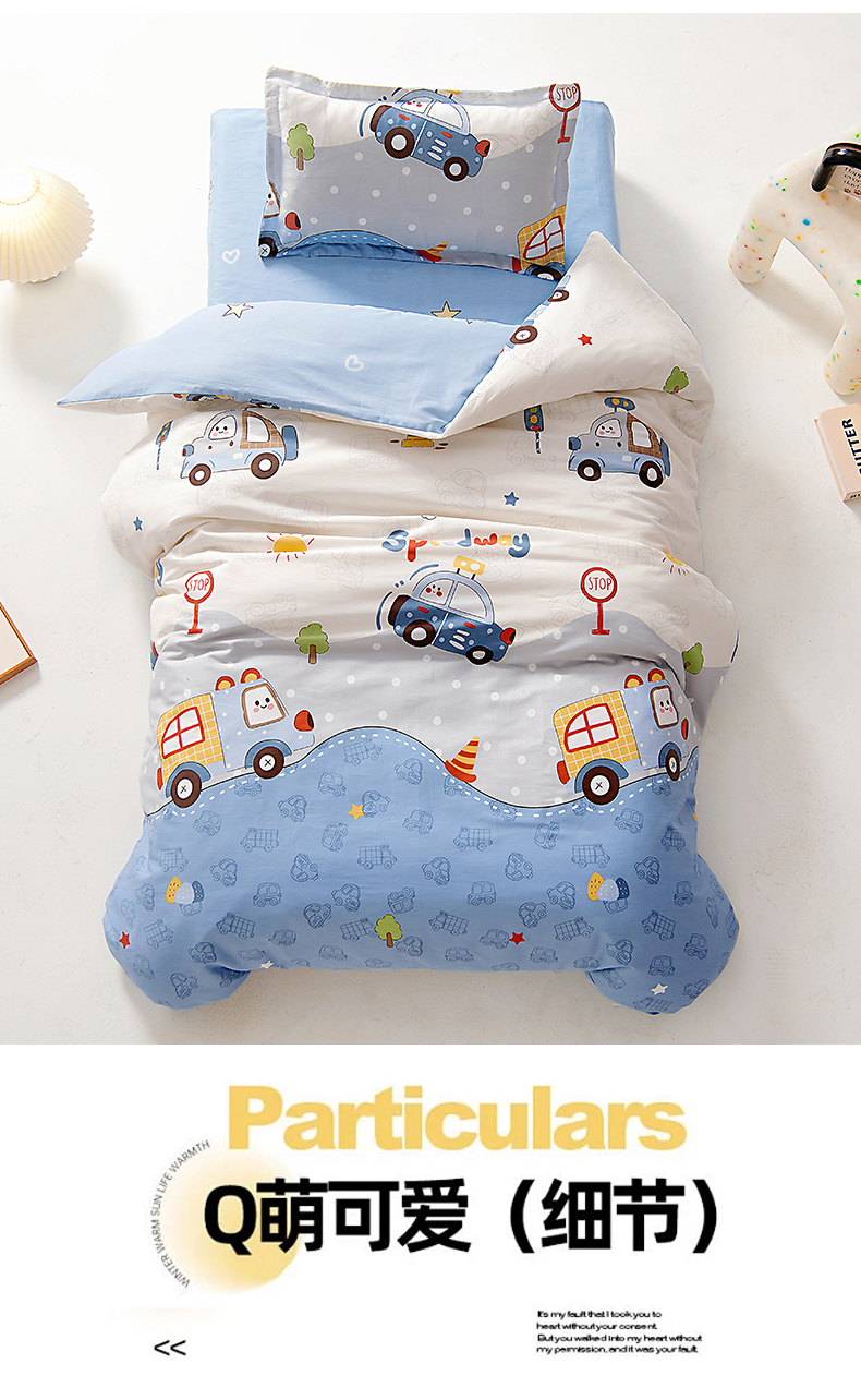 当前位置: 91家纺网 > 商品网购 > 床品套件 > 多件套 > 多件套 > 芭伯妮2025AB版全棉幼儿园三件套儿童被子套件六件套 车车环游记