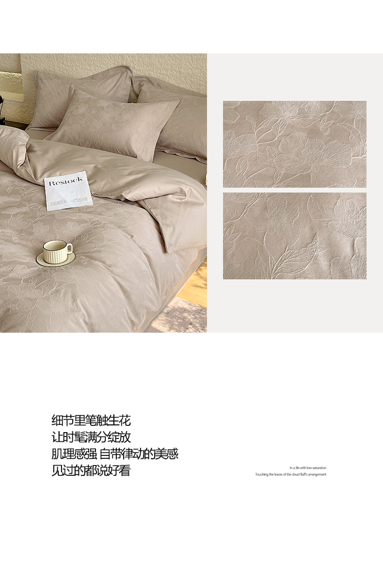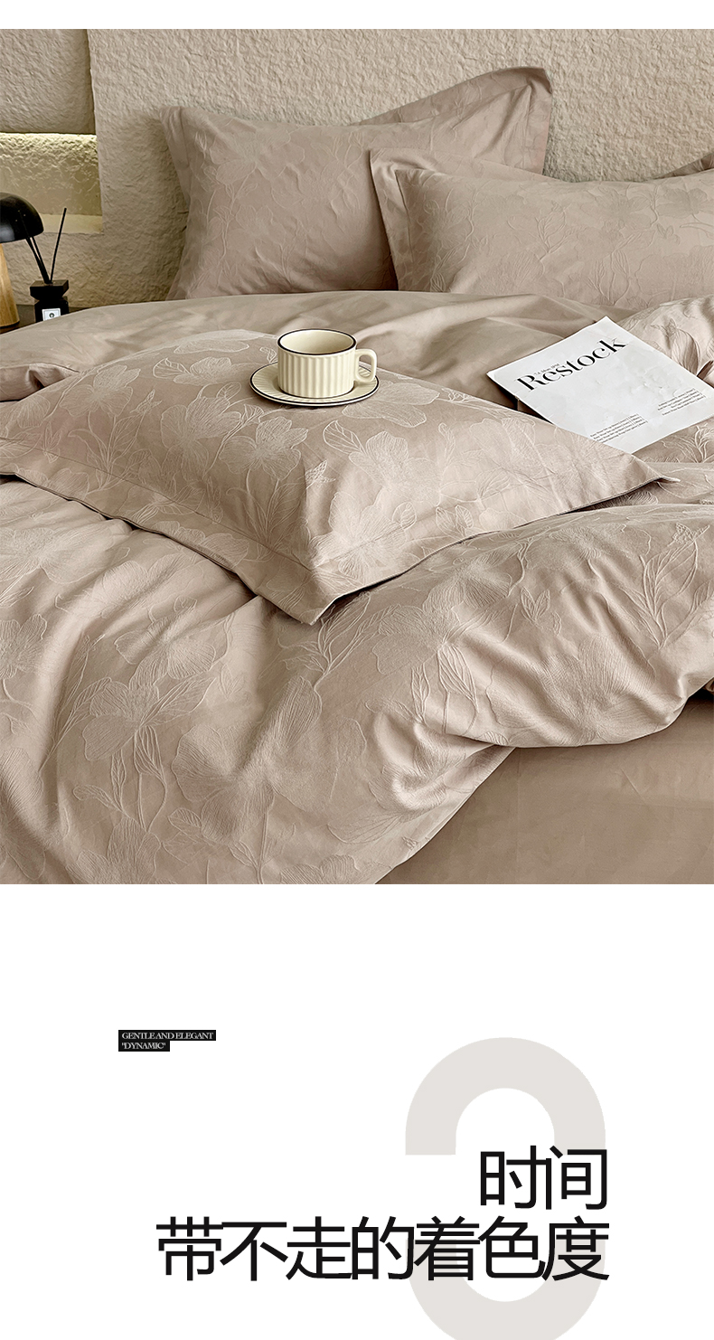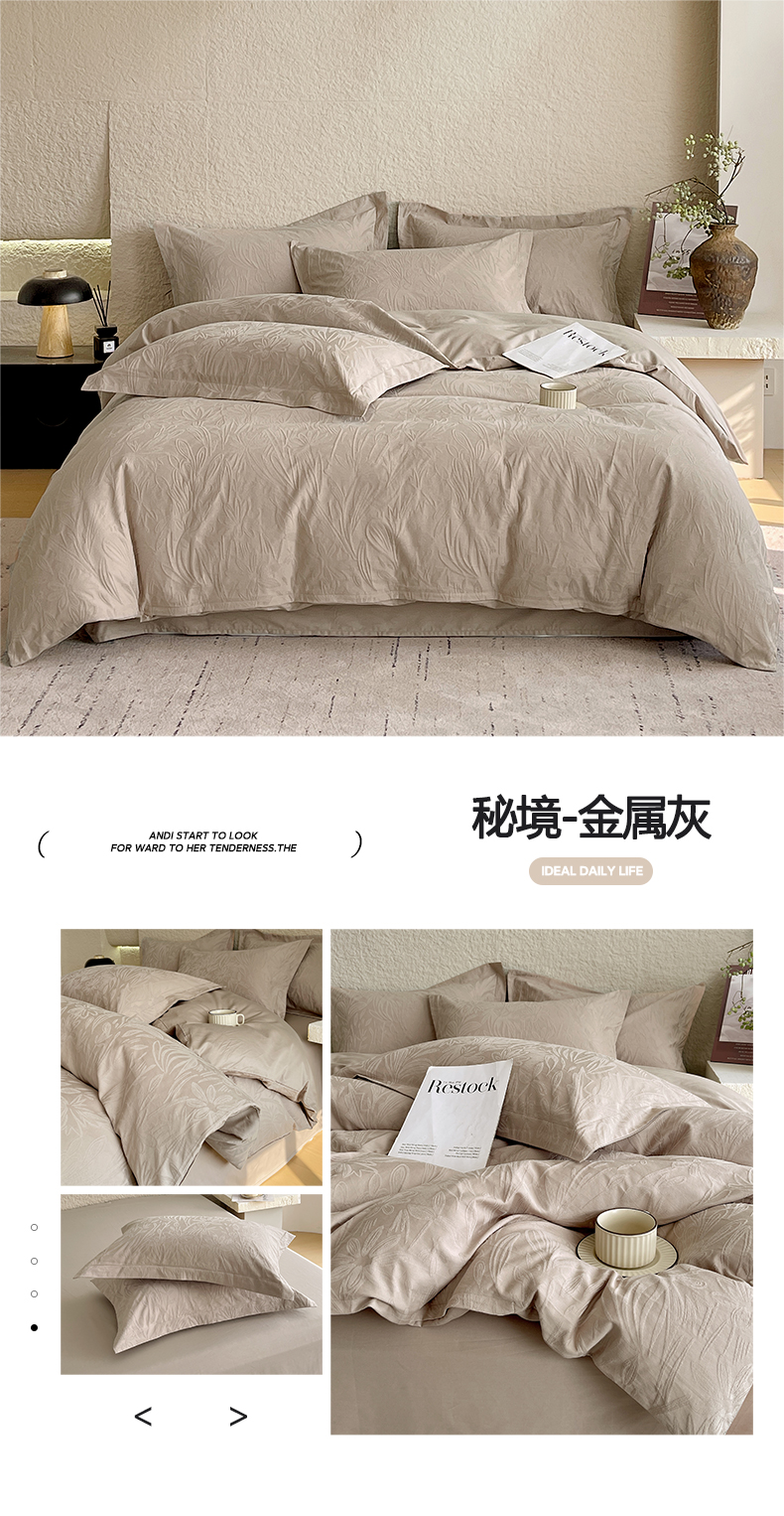 麦田家纺 2026新款A类全棉亮面浮雕提花四件套 花柔玉净-金属灰