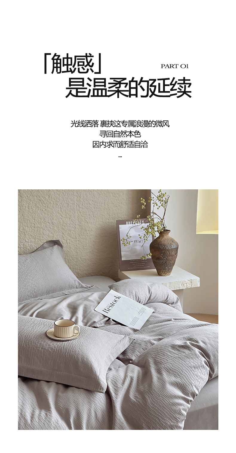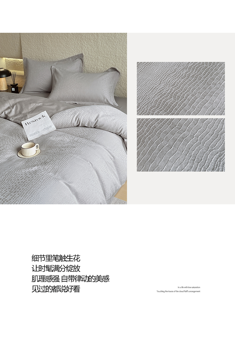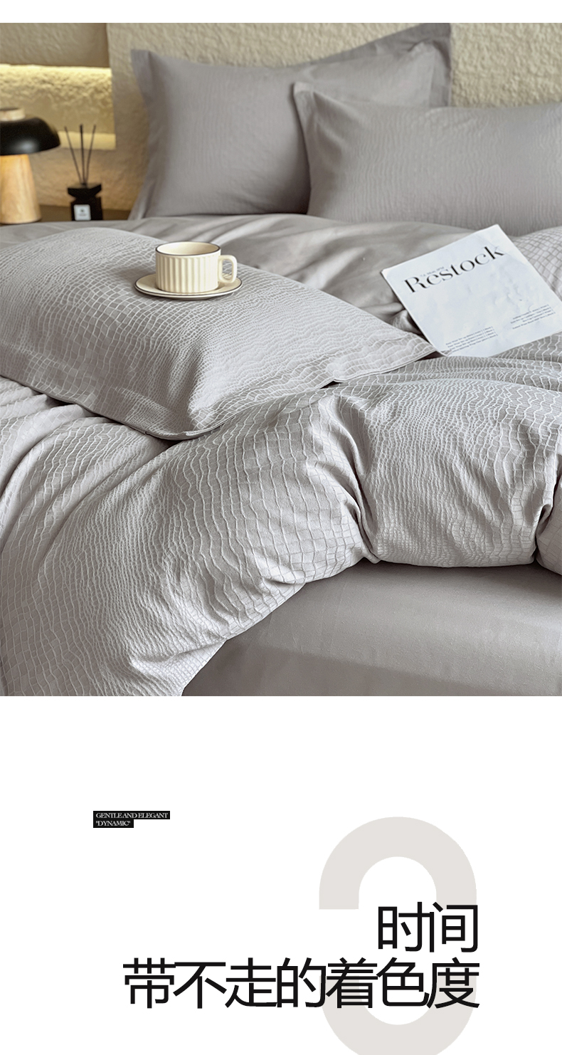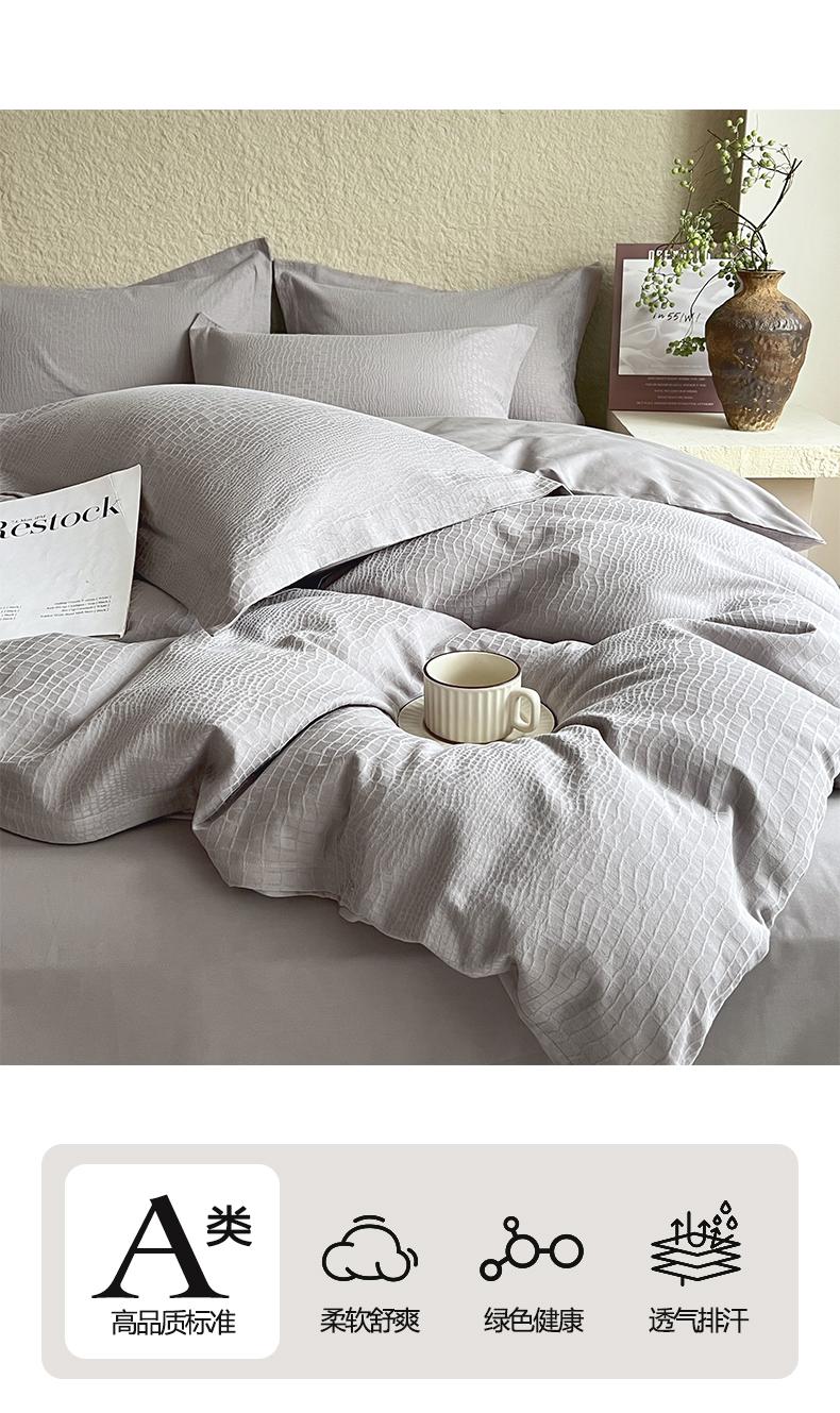 麦田家纺 2026新款A类全棉亮面浮雕提花四件套 石烁-太空灰