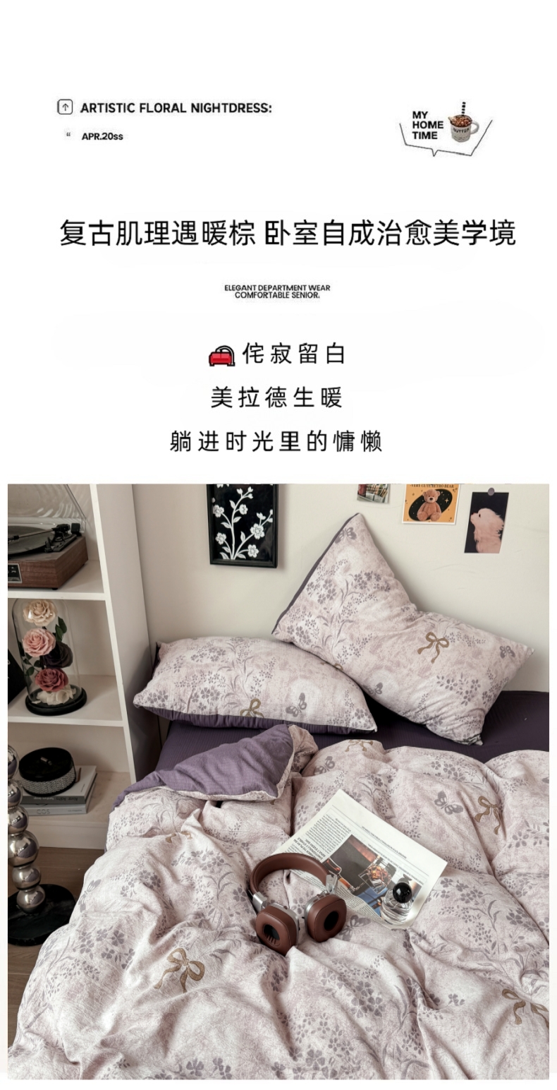 当前位置: 91家纺网 > 商品网购 > 床品套件 > 四件套 > 化纤活性四件套 > 雅阁尔家纺 2026新款轻奢复古美拉德风泡芙棉四件套水洗棉双层纱床单被套学生宿舍三件套床笠款 花姿