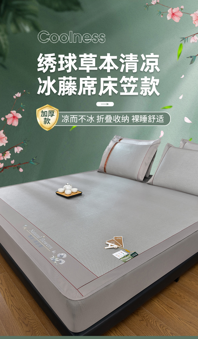 当前位置: 91家纺网 > 商品网购 > 床上用品 > 凉席 > 凉席套件 > 小牛席业 2026新款加厚款-绣球草本清凉冰藤席系列(床笠款)清凉席凉席藤席冰藤席冰丝席草席竹席乳胶席凉感豆豆 加厚款-绣球草本清凉席(床笠款)银灰