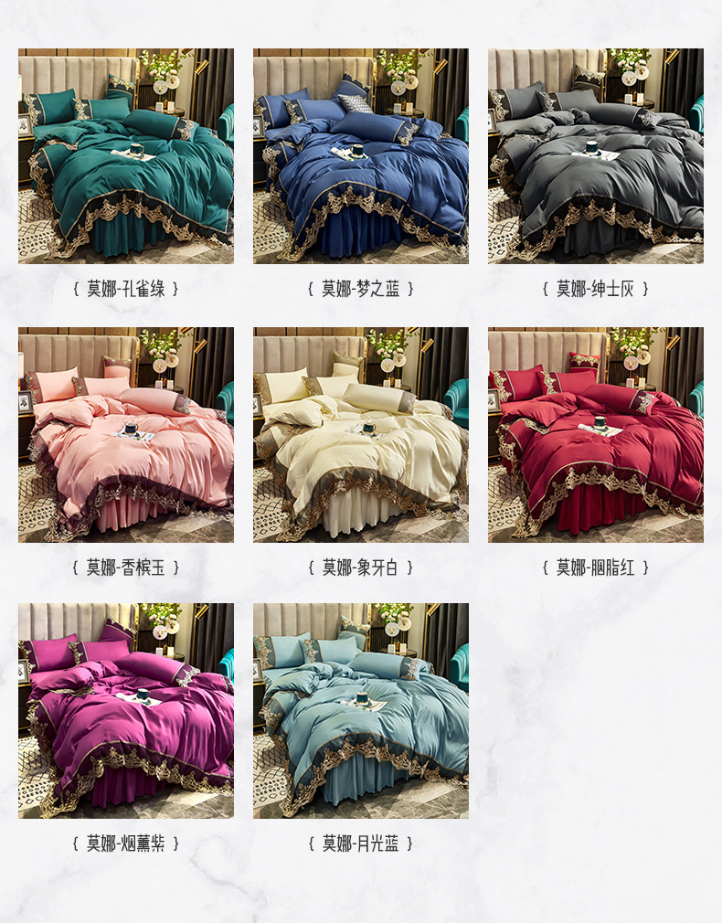当前位置: 91家纺网 > 商品网购 > 床品套件 > 四件套 > 普通磨毛四件套 > 沐珩家纺 2026新款轻奢典藏艺术亲肤磨毛欧式花边床裙款四件套-莫娜 莫娜-香槟玉