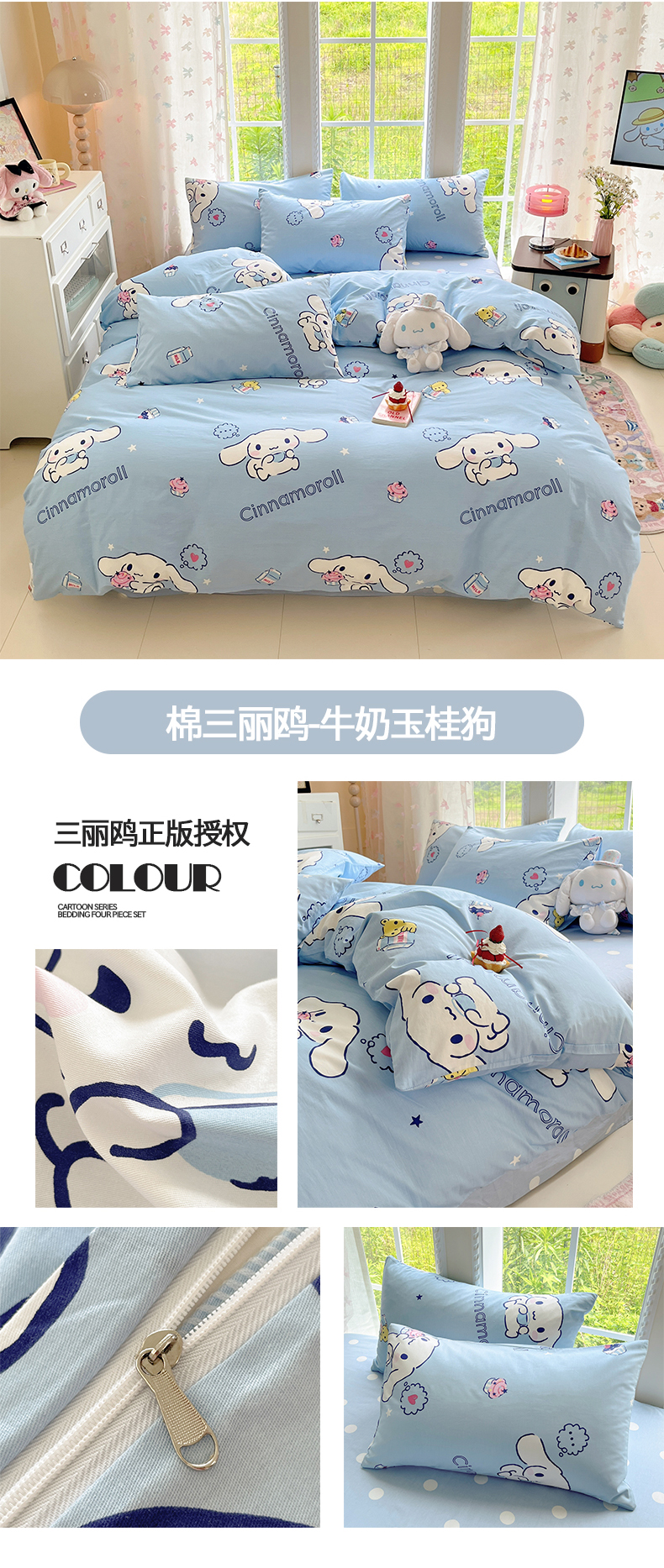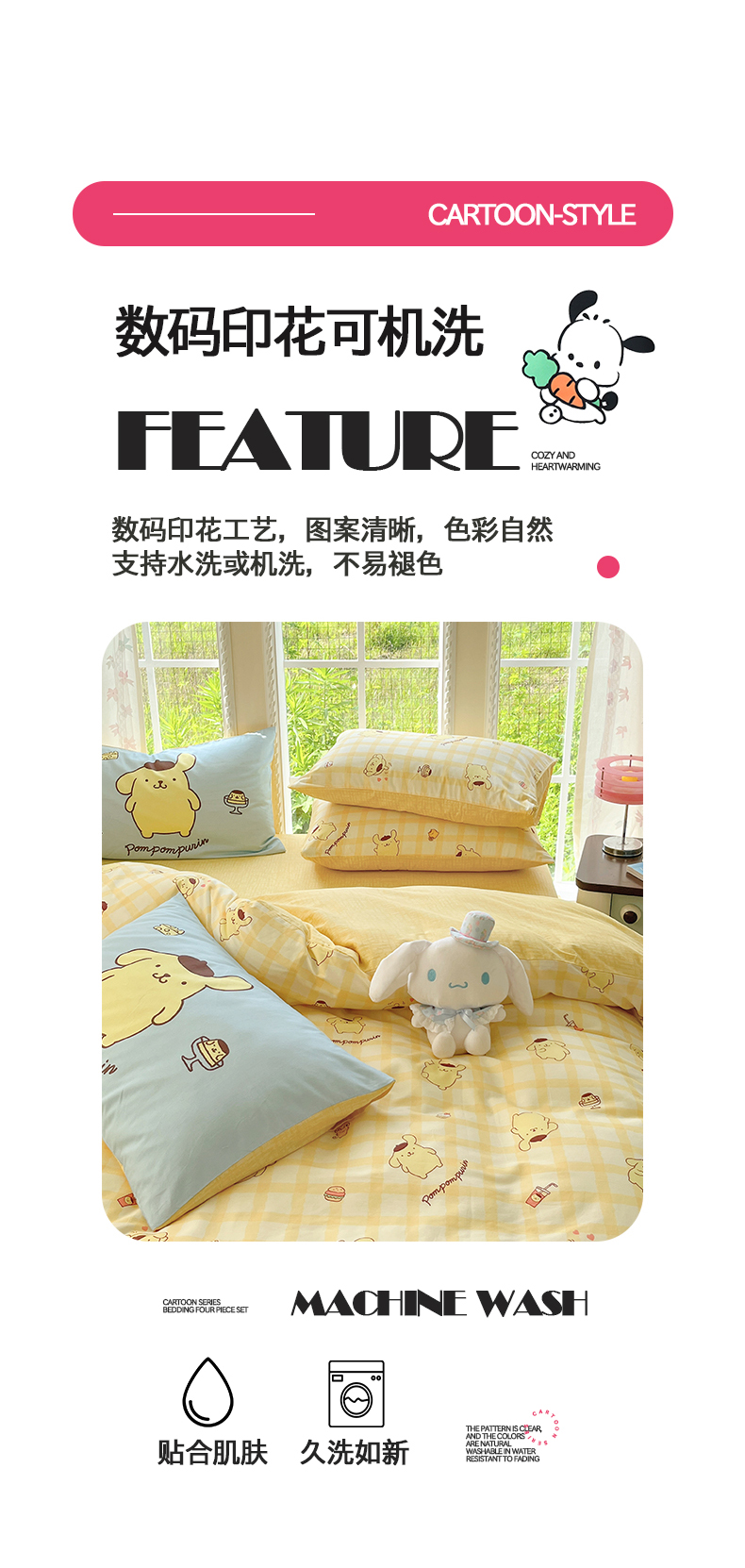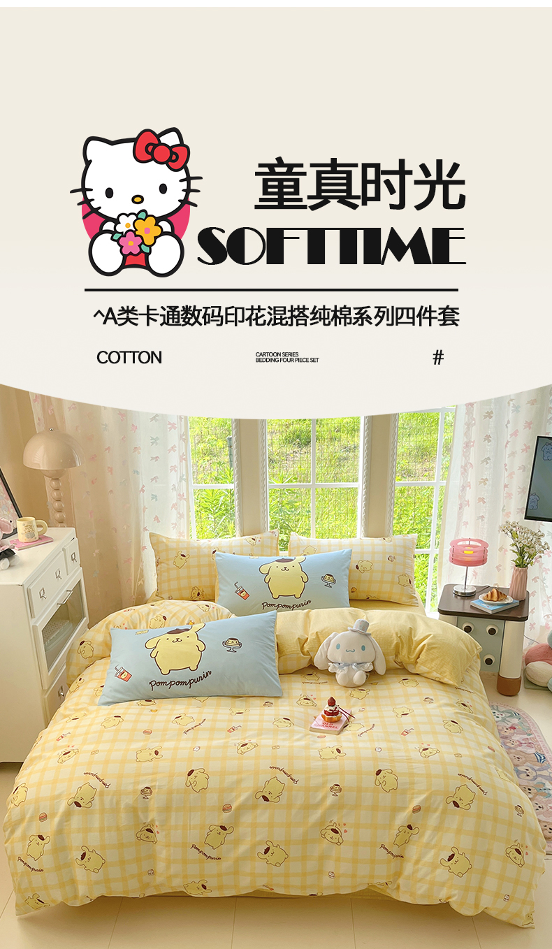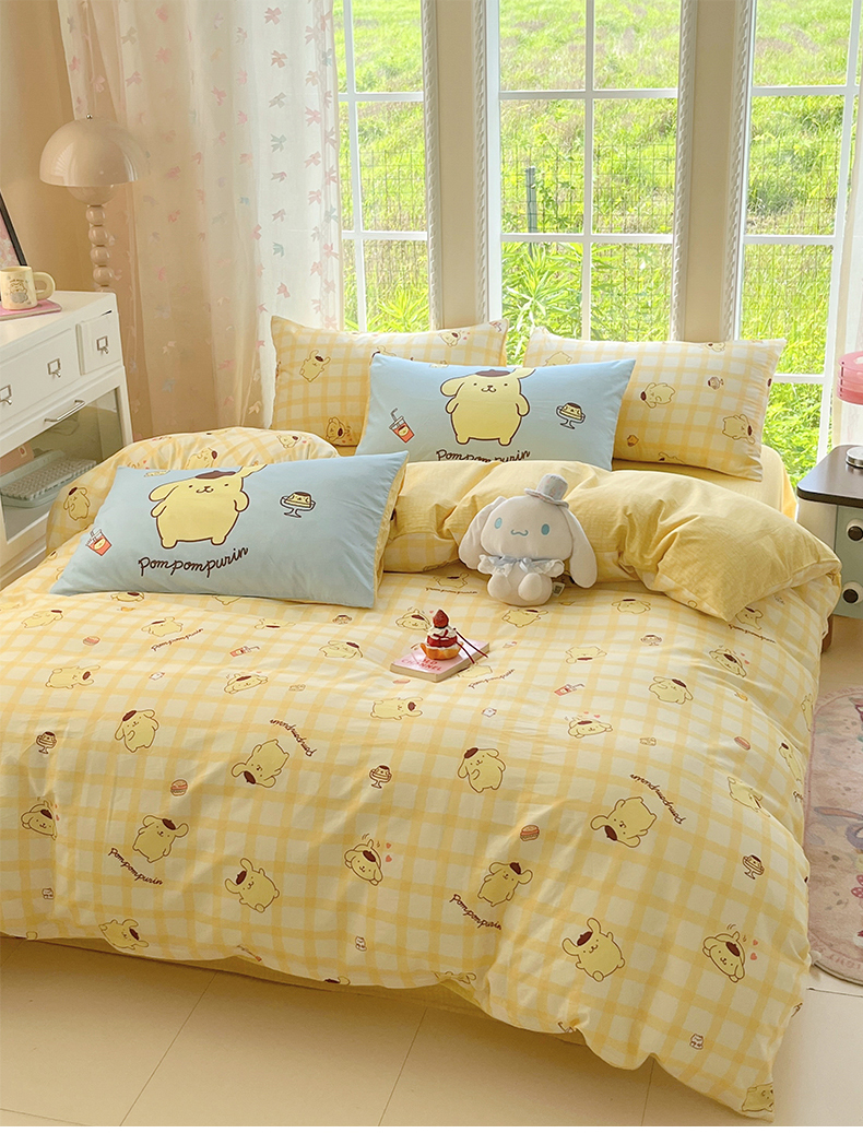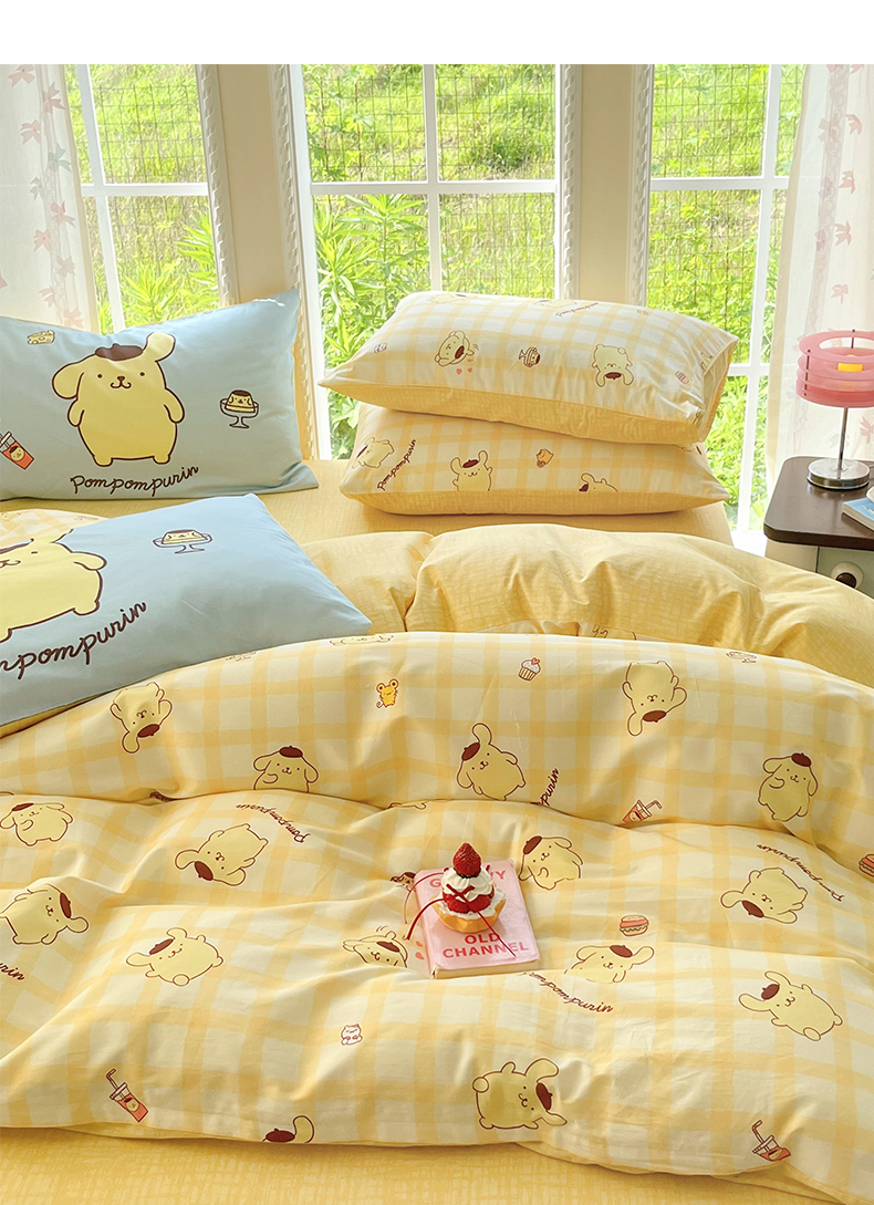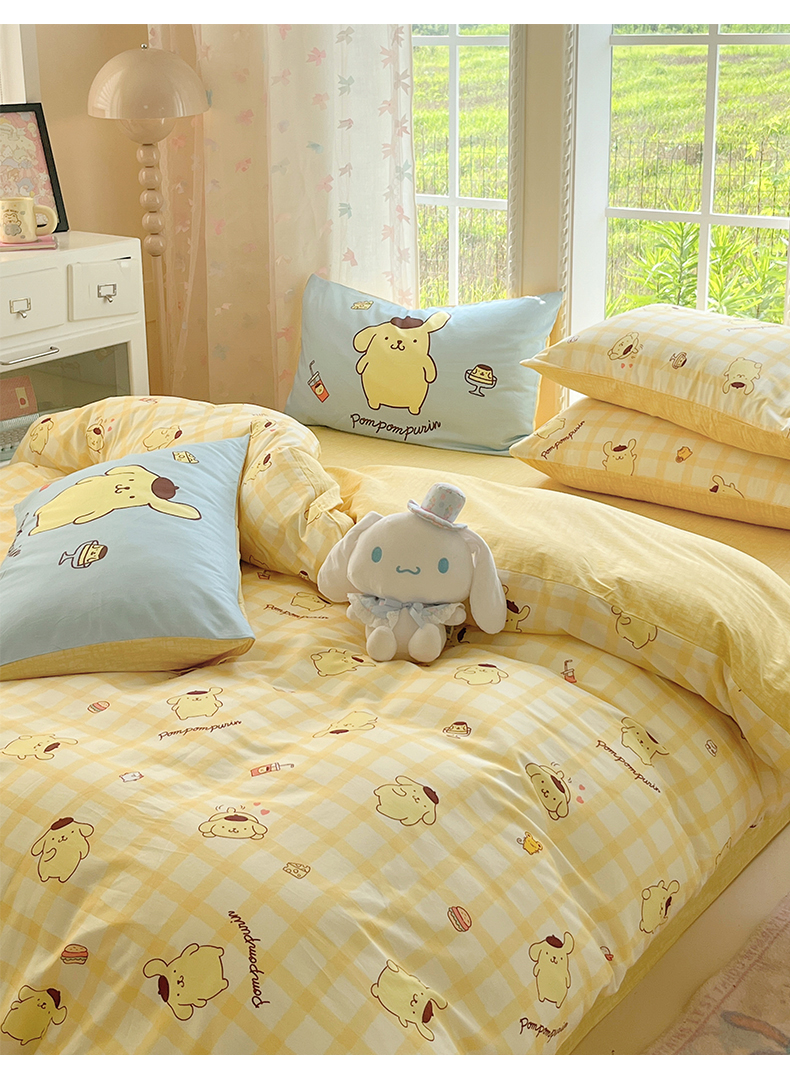 当前位置: 91家纺网 > 商品网购 > 床品套件 > 四件套 > 全棉普通四件套 > 桃子家居 2026新款A类三丽鸥正版授权卡通数码印花混搭纯棉印花系列四件套 棉三丽鸥-混搭焦糖布丁狗